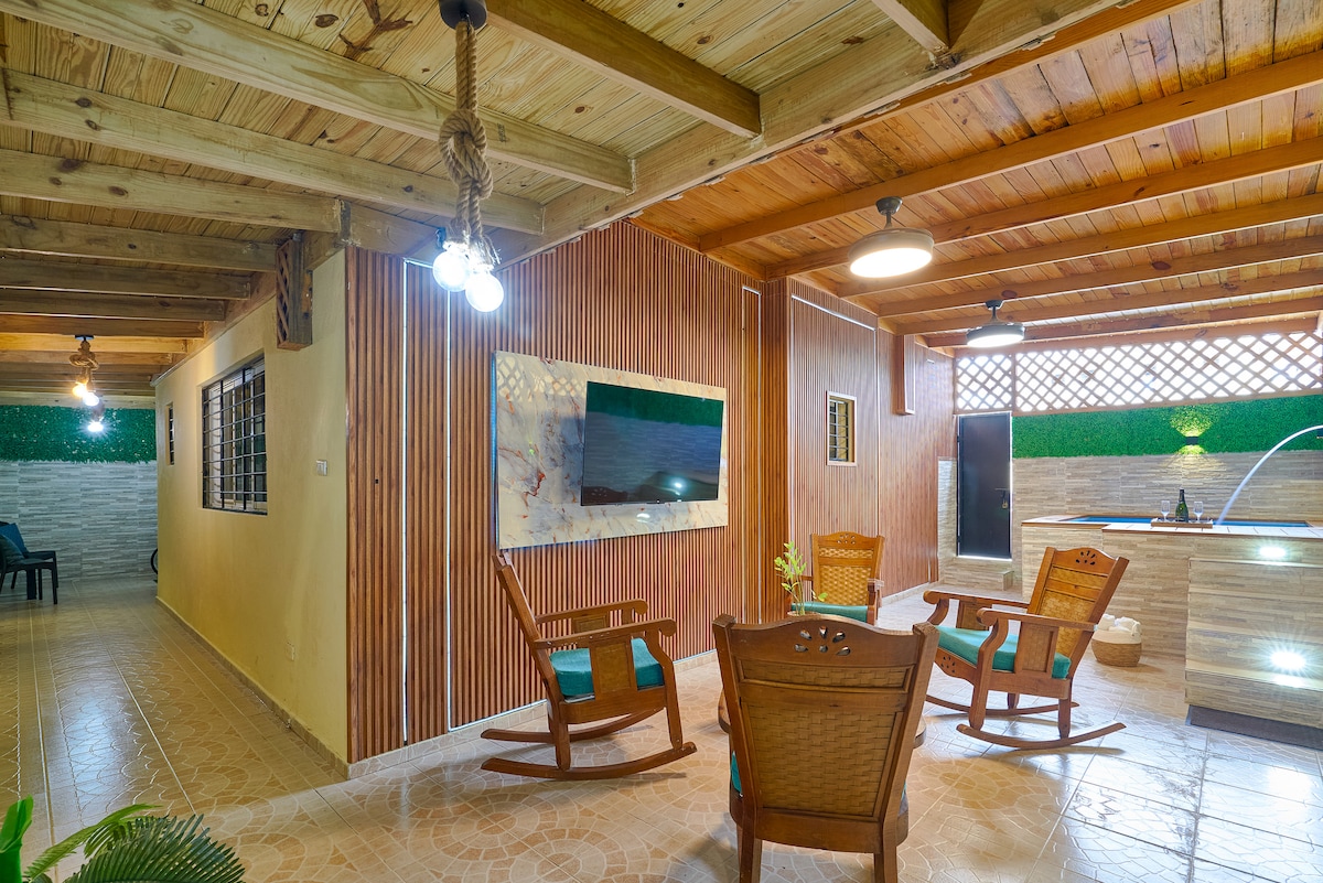 ☞Jacuzzi ☞Patio climatizado y techado en madera ☞ Aire acondicionado incluido ☞ Cámaras de seguridad en la entrada y la salida ☞2 Estacionamientos incluidos ☞ Wi-Fi ☞ Ventiladores de techo ☞ Smart TV de 75 Pulgadas ☞ Lavadora ☞ Inversor de Emergencia