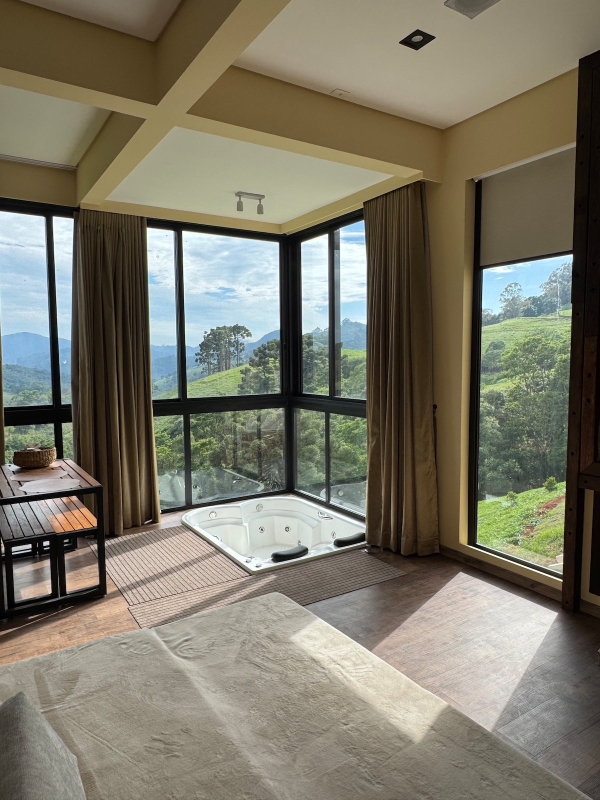 Romantická chata v Santo Antônio do Pinhal nabízí nádherný výhled na hory. Ideální pro zvláštní oslavy nebo pro ty, kteří chtějí jednoduše uniknout rutině a znovu se spojit s přírodou. Prostor je útulný a má luxusní vířivku, pohodlnou manželskou postel a kompletní ložní a koupelnové vybavení, které hostům poskytuje maximální pohodlí.