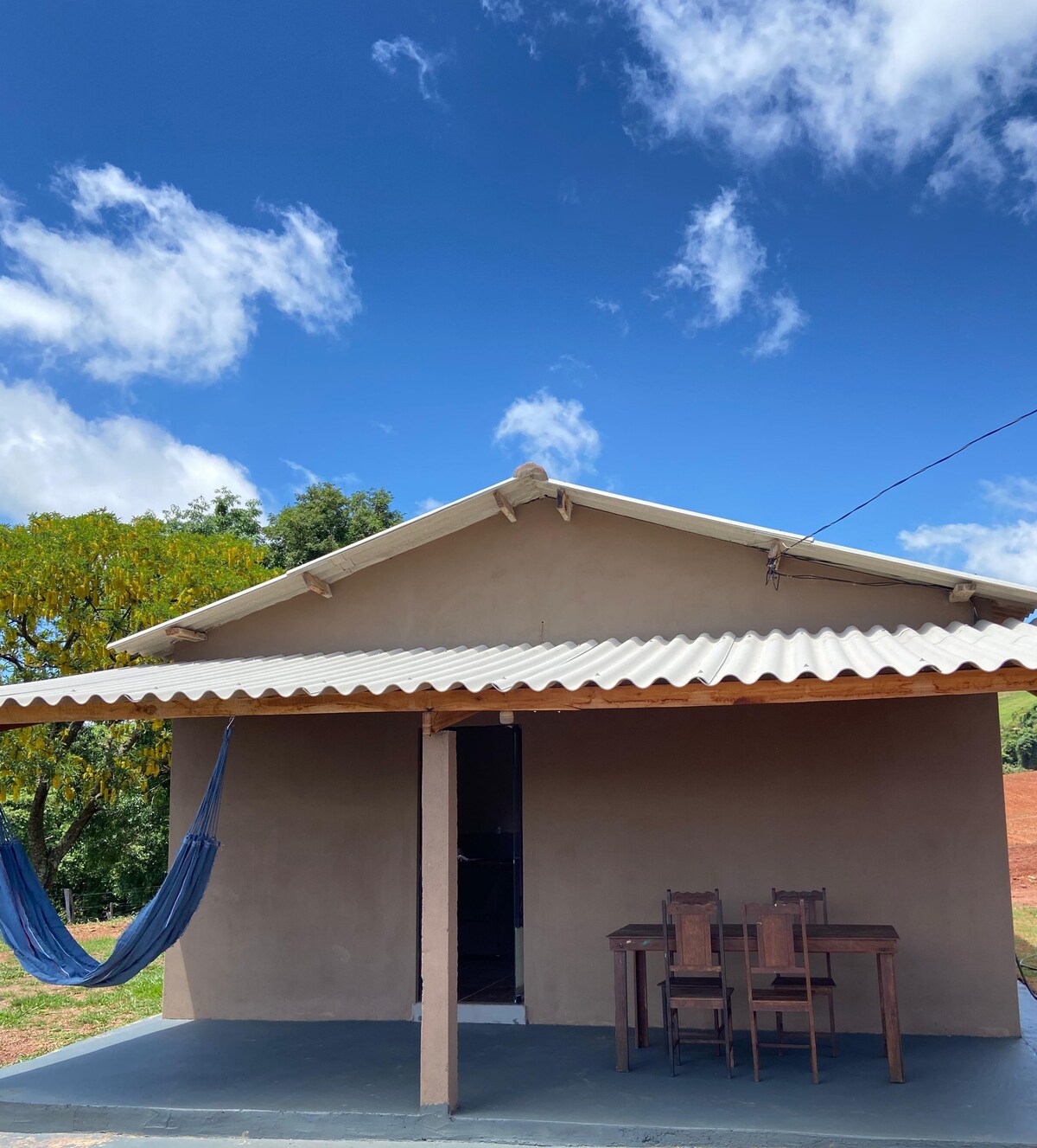 Acomode-se com sua Família. Chácara estilo fazenda, construída em 2021, arejada/ventilada, com tv Android + Sky, Wi-Fi piscina grande, varanda e area de churrasco, fogão a lenha, fogão a gás, forno semi-industrial, panela elétrica, tudo para seu conforto em meio a natureza, além de estar perto da Serra da Canastra e tbm há 55 minutos dos Canyons de Capitólio e a 15 minutos do Glória. *c/ roupa de cama(lençol, fronha c/ travesseiro e 1 coberta por cama)