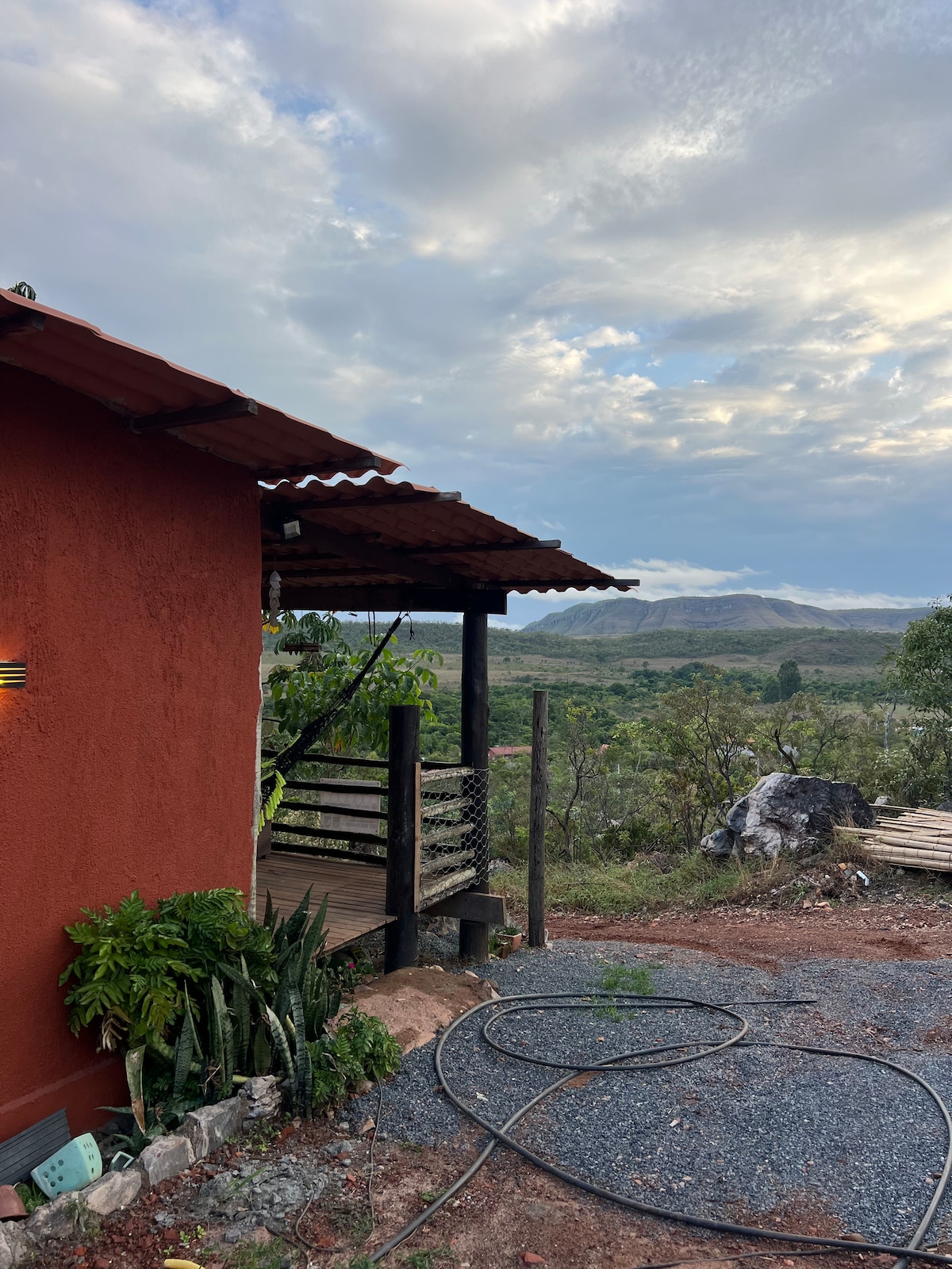 Zažijte klid naší minimalistické chaty, ideální místo k návštěvě Chapada dos Veadeiros. Skvělá lokalita, 3 minuty od centra, nabízí útulnou atmosféru. Po dni plném vodopádů a stezek si užijte VÍŘIVKU na balkoně a zapalte OHNIŠTĚ na zahradě. KLIMATIZACE, Wi-Fi, TV s Netflixem, plně vybavená kuchyně, 800 metrů od hlavní třídy, strategická poloha, naše chata je ideální volbou pro ty, kteří přijíždějí navštívit Chapada dos Veadeiros.