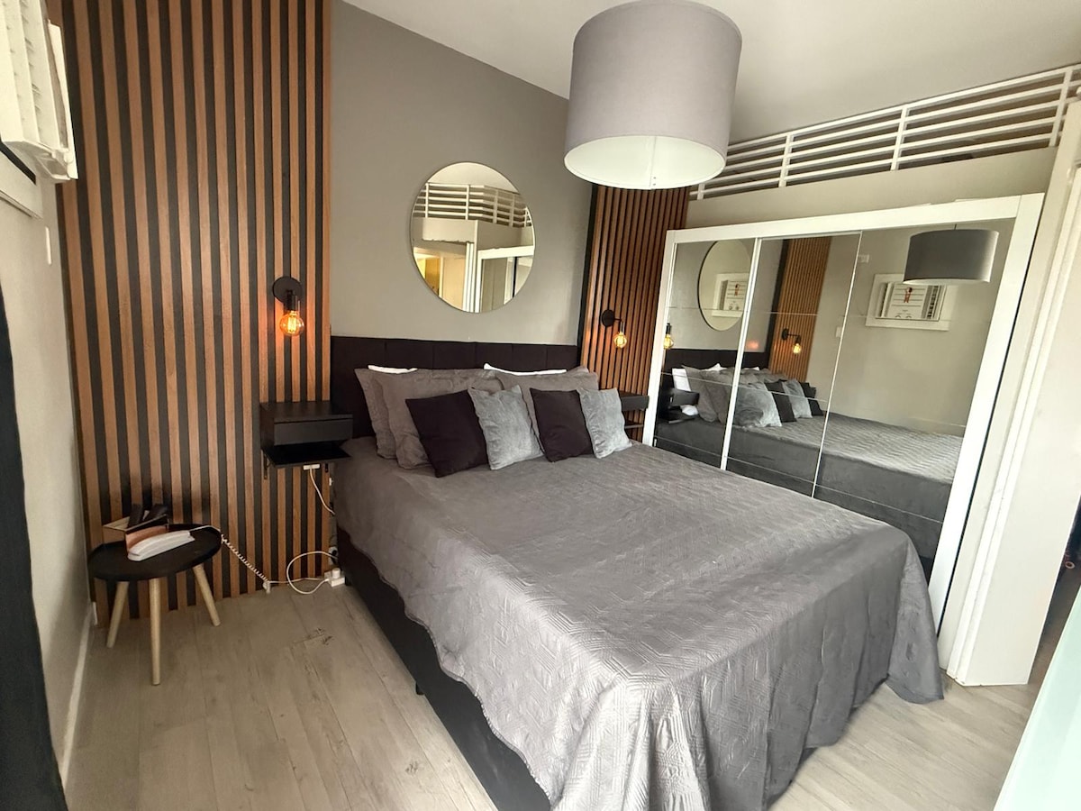 🌴 Flat completo a 5 min da Praia do Gonzaguinha! Hospede-se em um flat confortável, moderno e muito bem localizado: apenas 5 minutos da praia e 2 minutos do Shopping Brisamar, em uma região segura, cercada por comércios, restaurantes, mercados e farmácias. ✨ O que você encontra no flat: • Hidromassagem privativa • Netflix • Salão de jogos • Piscinas na cobertura com vista incrível • Estacionamento com manobrista 📍 Reserve agora e aproveite o melhor da cidade com conforto e tranquilidade