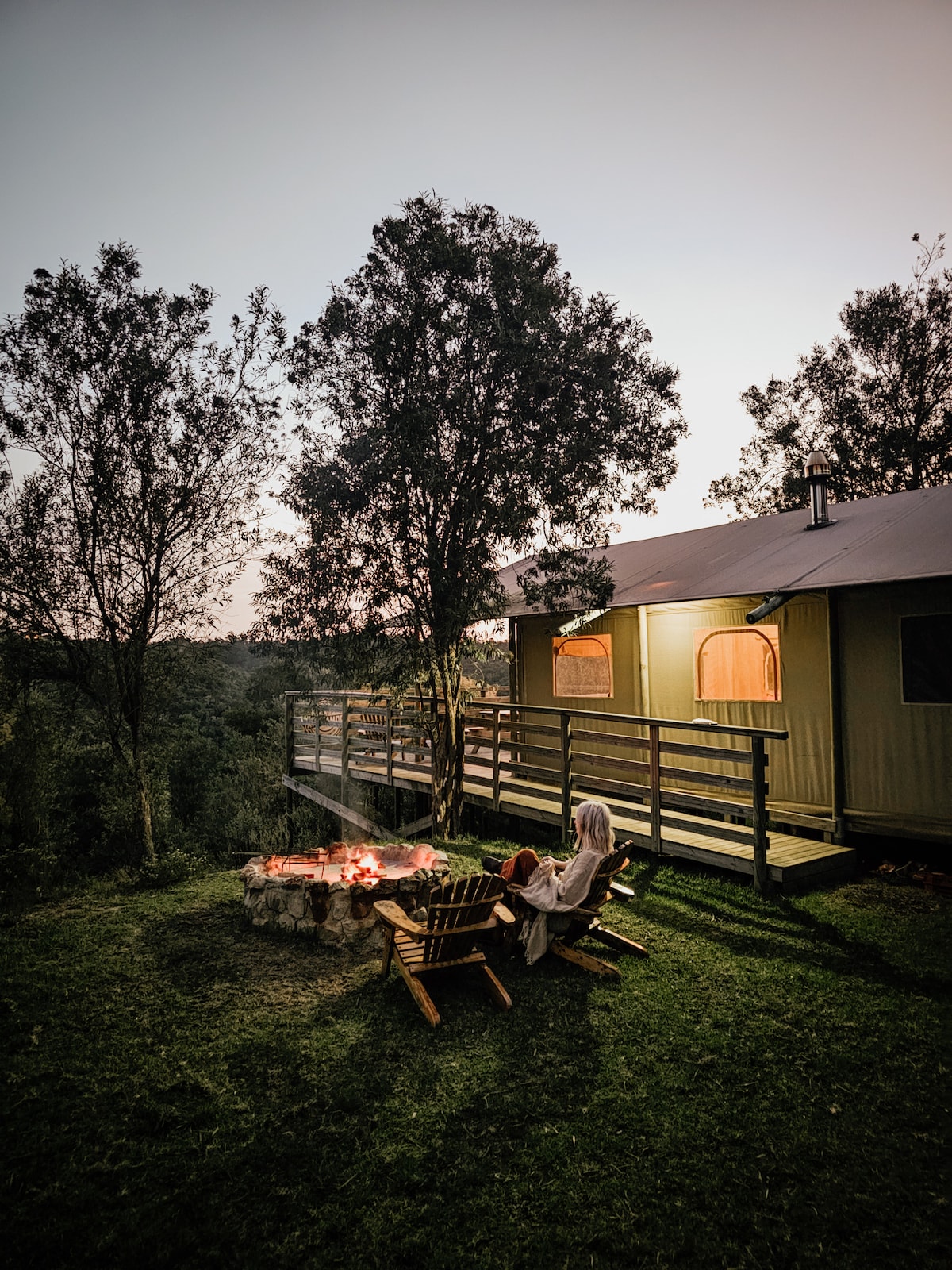 Reconnect with nature at this unforgettable escape. Large safari style tents situated on a raised deck with views of the forest. The tent has two single beds, chairs, power points and a deck for you to lounge on. You have access to 3 choices of bathrooms, some with outdoor showers and another with a bathtub boasting forest views. Use our clean and well equipped communal kitchen as well as braai areas, a bar, a plunge pool/hot tub, plus some beautiful walks into the forests and rivers.
