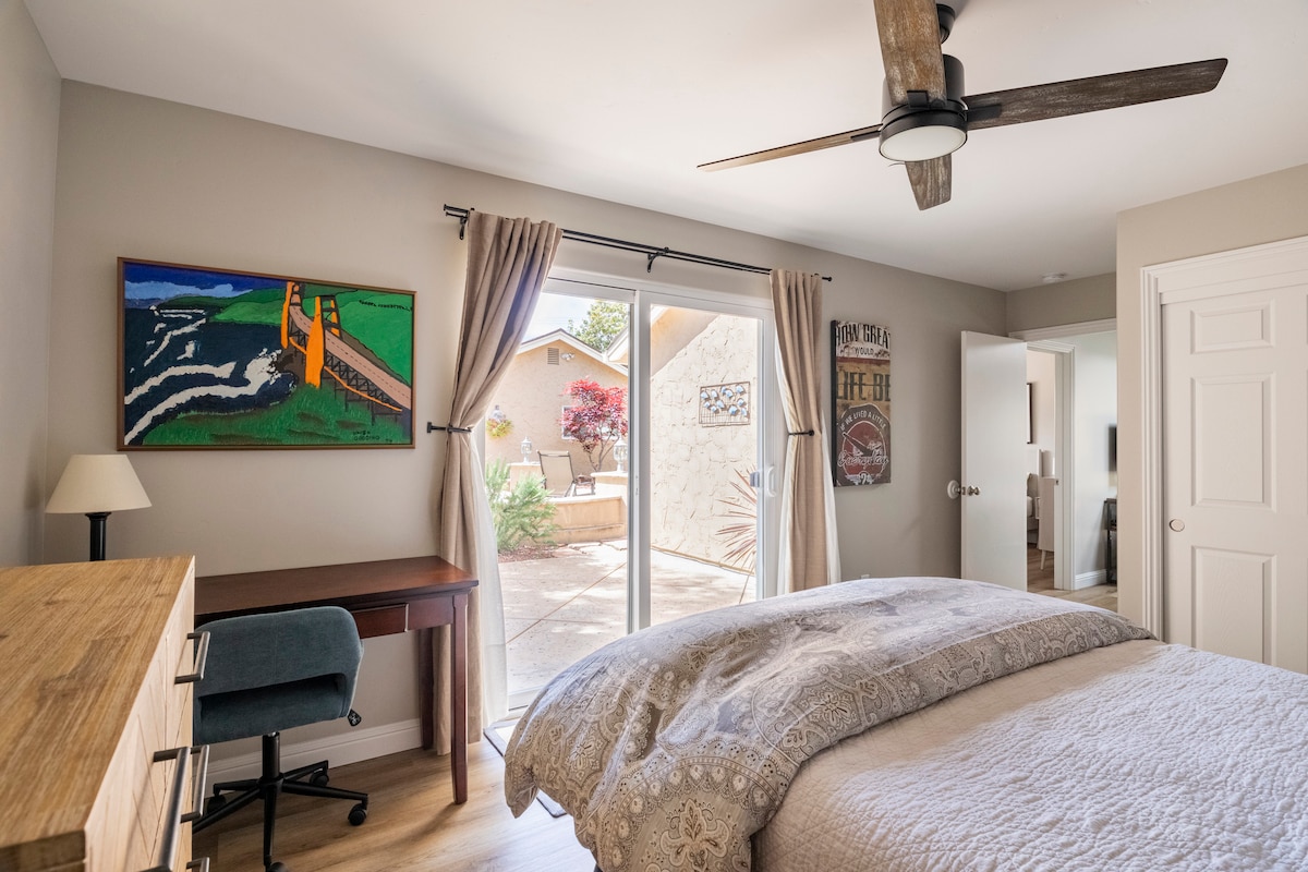 This sun-soaked suite has a private entrance and access to a beautiful garden patio, complete with night-time ambiance and a fireplace. The big bay window provides a view into the lush fruit, flower, and vegetable garden right outside. The comfy bed and beautiful old-town neighborhood add to the warm, homey feel. The suite is tucked away from the busiest parts of the city, perfect for a hub in the middle of NorCal's best attractions: SF, Carmel, Pebble Beach, Monterey, Santa Cruz, and more.