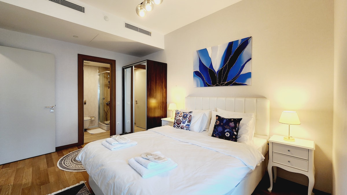 Vítej v útulném a pohodlném domově, kde si můžeš opravdu odpočinout. Tato moderní rezidence nabízí dvě útulné ložnice, světlý obývací pokoj a plně vybavenou kuchyň – ideální pro rodiny a delší pobyty. Každý pokoj má klimatizaci, televizi a rychlou Wi-Fi. Užij si krytý bazén, posilovnu, místnost na pilates, vnitřní parkoviště a nepřetržitou ostrahu. Všechno je navrženo tak, aby ses cítil/a bezpečně a jako doma.