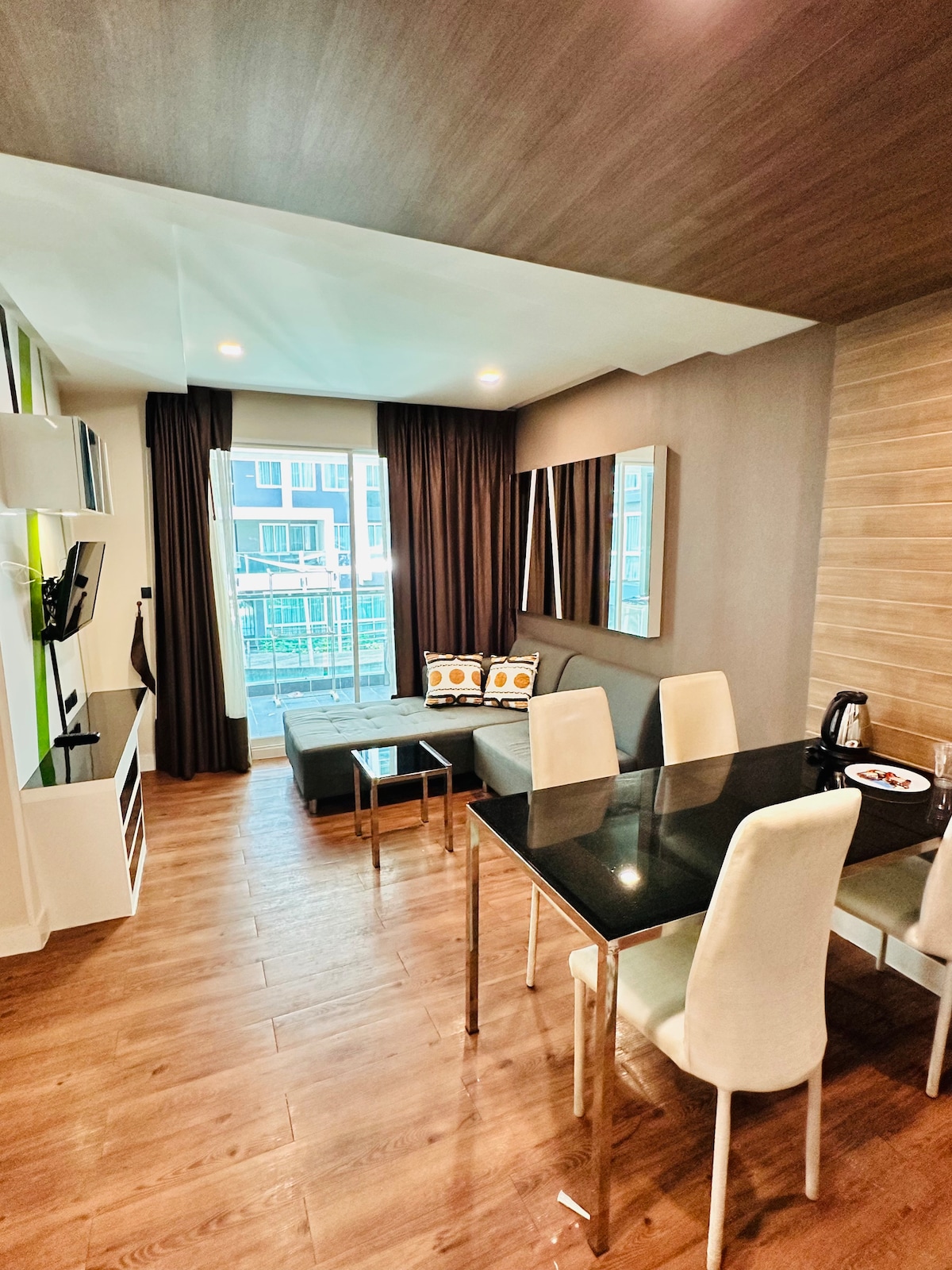 🏖 A 2-bedroom, 2 Bathrooms condominium located on the 10th floor at The Luxurious Veranda Residence Pattaya 🏖 Highlights - Modern and unique interior. - Spacious living room with a big Sofa-Bed. - High-end facilities on site. - Infinity Pool right in front of Na Jomtien beach. - High-rated restaurants for your convenience. - Free towels & toiletries, coffee & tea. - Free Wi-Fi - Free cleaning during stay - Extra services are available.