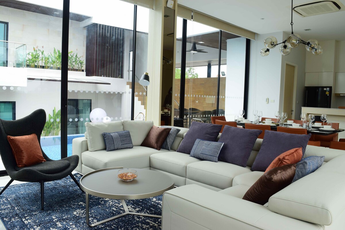 Enjoy total privacy in our villa close to many local restaurants, nightlife & family-friendly activities. 20 mins drive to the center of Pattaya city. A very peaceful setting offering huge private space. Modern house, 3 bedrooms, 5 beds, Big private swimming pool. Our pool villa it suitable for families / friends / couple who need a private house like home. 3.5Km to Rimpa Lapin 4.5Km to Ban Amphur Beach 9.9km to Tiger PARK Pattaya 18km to Pattaya walking street 20Km to Terminal21
