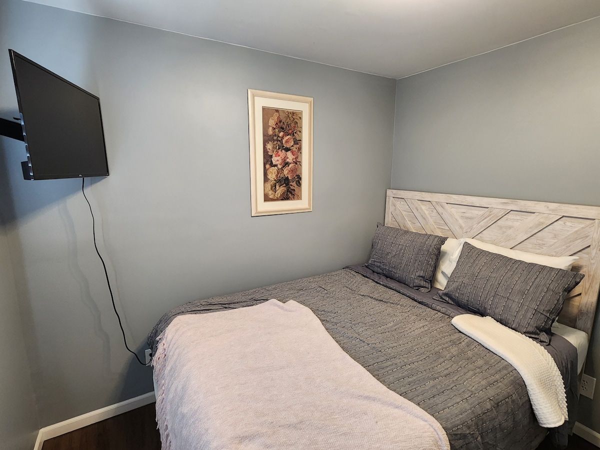 Completely furnished one bedroom apartment! Just a short hour drive North of Kansas City and 20 miles East of Saint Joseph! Located in the quant small town of Stewartsville. Two wineries and a working dairy (Shatto Milk Co.) close by. The bedroom hosts a spacious king size bed, and the living room has a pull-out queen sleeper sofa. Amenities include washer, dryer, Fast Wi-Fi and a 65" flat screen television.