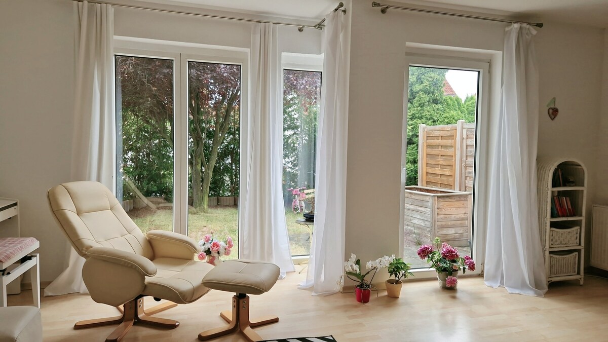 Dobrý den. Mé ubytování je centrálně umístěné a přesto příjemné pro relaxaci, nabízí vše, po čem vaše srdce touží. Máte k dispozici vlastní obývací pokoj (pohovka nabízí místo pro jednu osobu), ložnici (manželská postel), kuchyň, koupelnu se sprchou a WC a terasu, zahradu a útulný posezení na dvoře. Parkovací místa před domem zdarma. Lipsko je 40 km, Halle 20 km a krásné Goitzsche 15 km Řek v obci K dispozici je Wi-Fi, 2 kola a gril