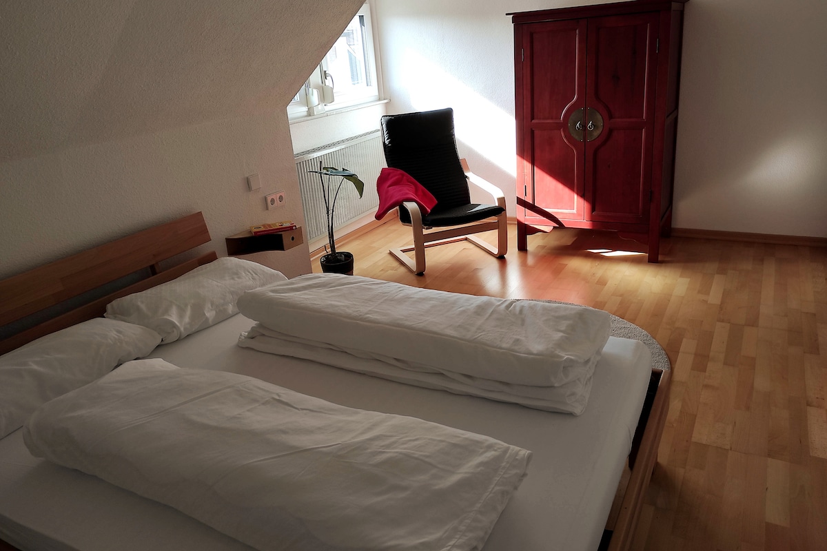 Klidný byt v přízemí ve velkém rodinném domě se samostatným vchodem a soukromým parkováním. Velký ateliér s manželskou postelí, pohovkou, křesly, TV, WIFI, výběrem DVD a knih a malým pracovním stolem. Samostatná kuchyně a koupelna. Na vyžádání je k dispozici dětská jídelní židlička a dětská postýlka. Italská restaurace, pekárna, lékárna a supermarket jsou v docházkové vzdálenosti. K dispozici je pánské kolo k pronájmu. Místní autobusová doprava do Biberachu (linka 2)