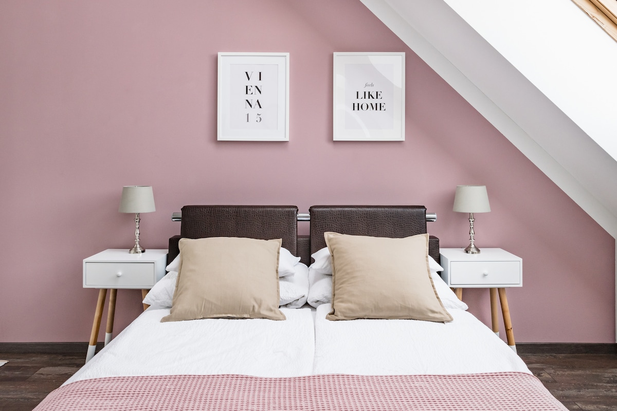 Stylový designový byt o velikosti 40 m² v klidném dvorním prostředí – ideální pro klidné noci ve Vídni. Užij si velkou manželskou postel pod šikmým stropem, klimatizaci, rychlou Wi-Fi a chytrou televizi s Netflixem. Plně vybavená kuchyň je ideální pro krátkodobé i delší pobyty. Odpočiň si na soukromém balkoně s výhledem na střechy. Jen 2 minuty do metra a asi 10 minut do centra města. Ideální pro páry, sólo cestovatele a na služební cesty.