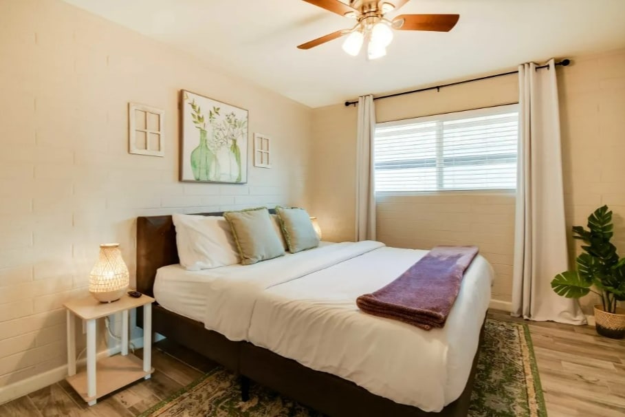 This charming Tempe bungalow is warm, comfortable, clean and welcoming. Perfectly located in the heart of Tempe, you are less than 2 MILES from ASU, tons of restaurants, busy bars, Mill avenue, shopping, Cubs training fields, local breweries, WholeFoods & much more. Between walking, biking, using the light rail, taking an Uber or even scootering, it’s very easy to get around here. Being located less than 6 miles from the airport, it’s conveniently located for fun and travel!