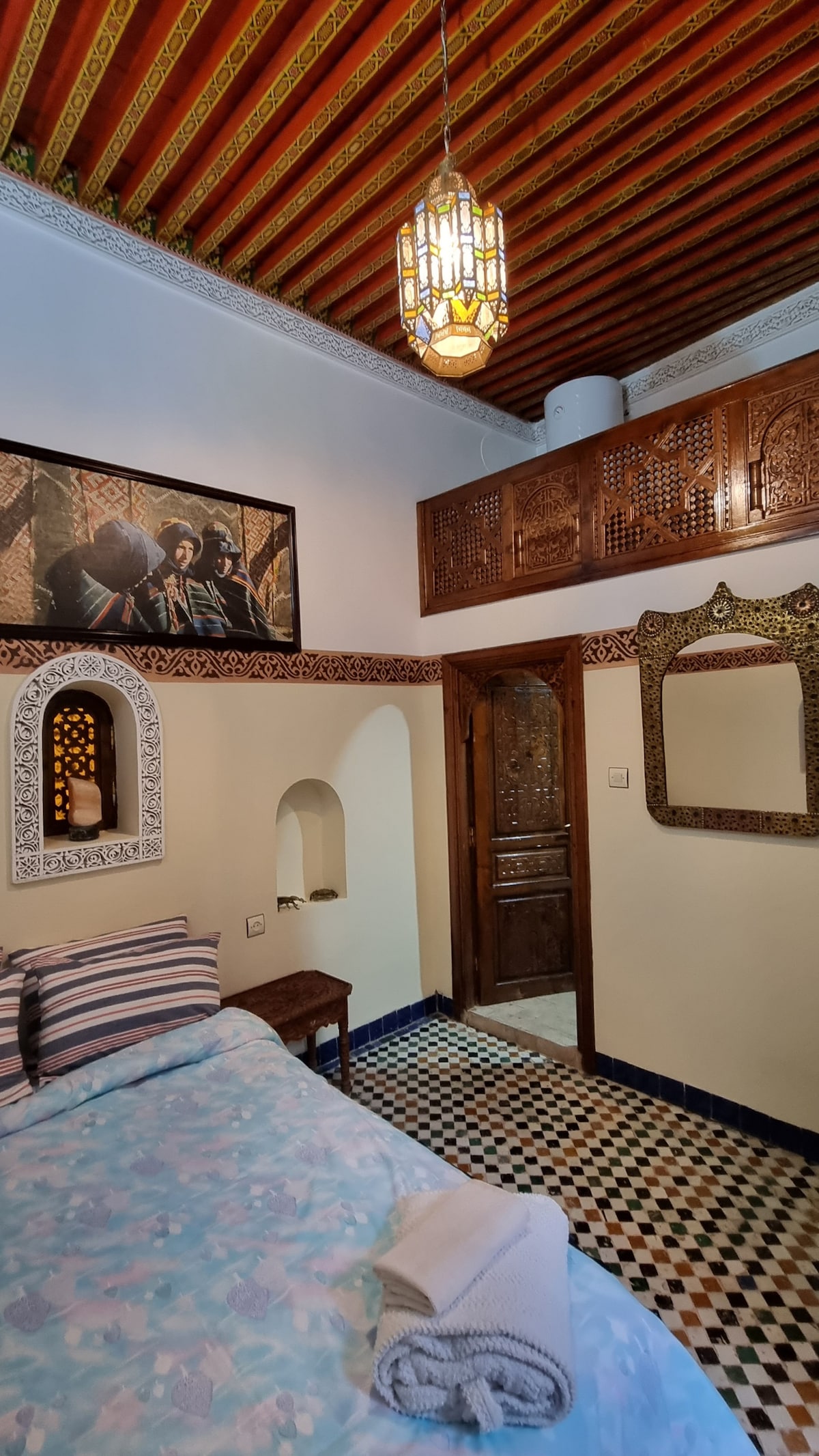 Mistrovsky kombinuje nadčasový marocký styl s moderním designem. Nachází se v samém srdci staré mediny Fez. Nabízí jedinečný zážitek. Prostorné apartmá má velkou ložnici, obývací pokoj zdobený marockou mozaikou, soukromou koupelnu a klimatizaci. Ručně vybíraný nábytek a vynikající látky vytvářejí atmosféru elegance. Začněte svůj den s lahodnou snídaní na své soukromé terase a užijte si dokonalý klid a soukromí. Zažij kouzlo Maroka jako nikdy předtím!
