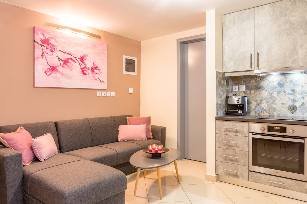 Soukromá vila s bazénem v blízkosti pláže v Kalyves na Krétě Tato vysněná vila je navržena pro nezapomenutelné chvíle - romantické, útulné a plné šarmu. It features a private saltwater pool (no chlorine, just pure relaxation), a home cinema with a projector for movie nights, a PS5 for some playful fun, and stylish pink-pink vibes that make every corner photo-ready. Ať už plánuješ romantický pobyt, zábavný výlet s přáteli, nebo si jen chceš odpočinout ve velkém stylu, toto místo má vše.
