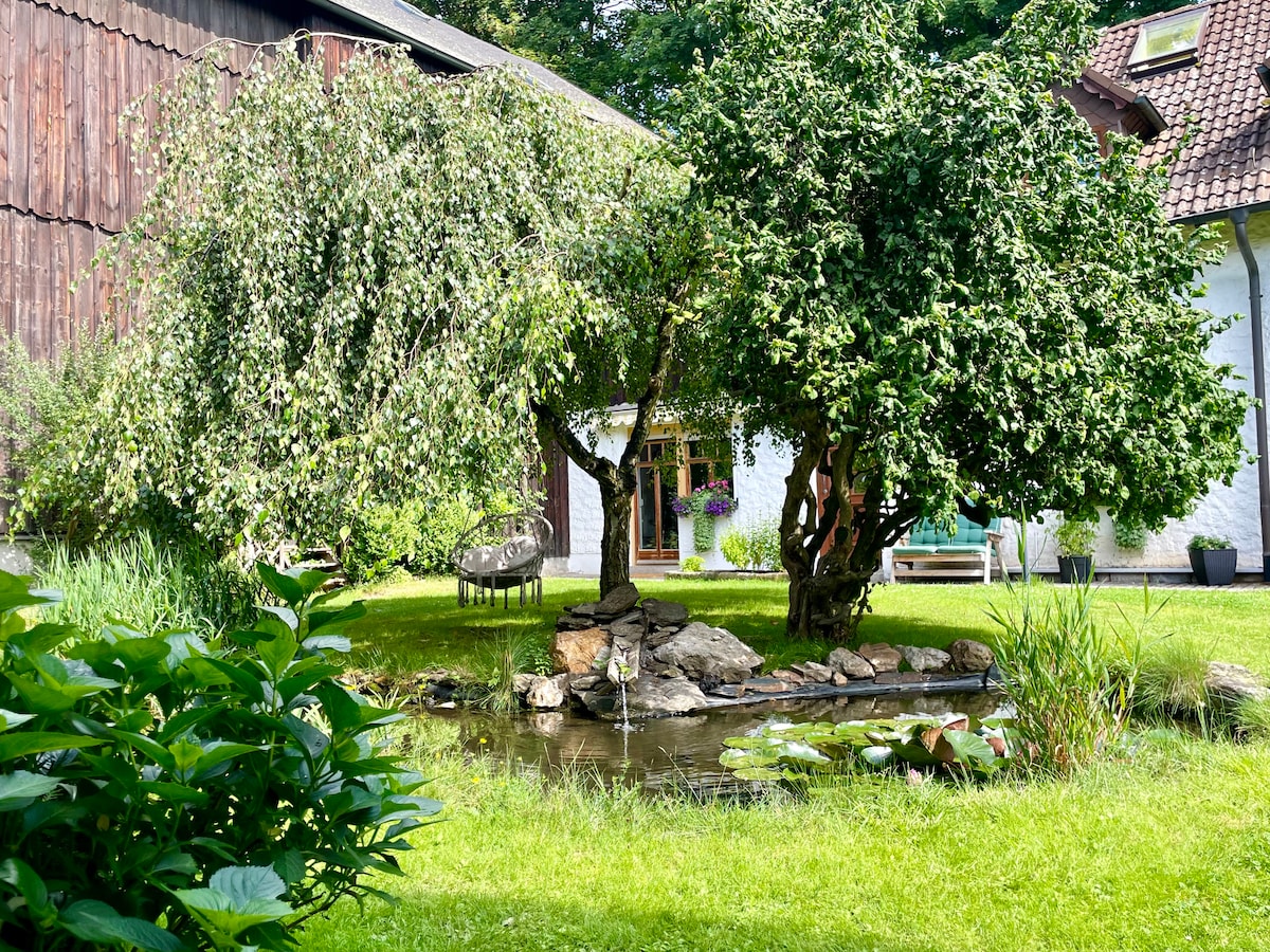 Old Toll house in the middle of the forest. For a relaxed time out for couples or singles as well as family vacation. Big Garden also with Playhouse and Gymnastic Bar Attic with lots of space, small trampoline for children Boxing Bag Cellar with Exercise equipment dog pound available Opportunities for Day Trips with Activities like: Hiking with Alpakas Explore old ruines and castles Hiking in the Area