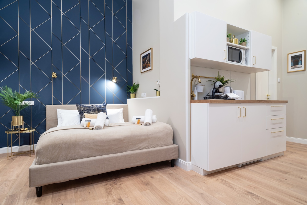 Vysoký standard a luxusní atmosféra v klasickém stylu. Nachází se v 8. okrsku, který se také nazývá Palace District, najdete tento klenot k odpočinku po dni nebo v noci ve městě. V sauně, ve vaně nebo jen na gauči s relaxační hudbou. Na přelomu století se setkává s nejnovějším moderním vybavením. Má vše, co bys od moderního domova mohl/a chtít. Vítej!