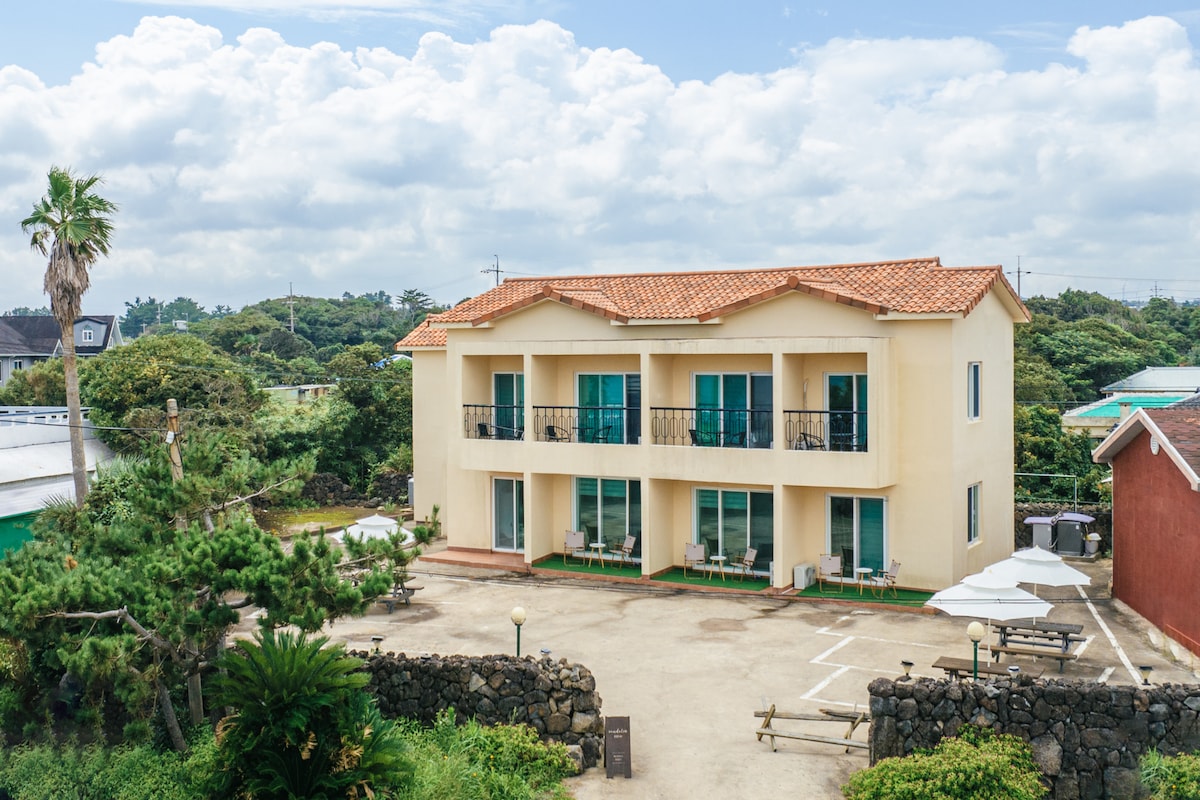 Nachází se na východě ostrova Jeju. Je to Haengwon-ri, v blízkosti slavné pláže Woljeong. Exteriér je obklopen kamennými zdmi. Jedná se o pohodlné a pohodlné ubytování s moderním pohodlím. Za oknem je ticho a vidíš krajinu ostrova Jeju. S jedinečnou přírodou a klidem ostrova Jeju Je to perfektní ubytování k odpočinku o samotě s přáteli a milovníky. K dispozici je malý dům a velký dům Dům, na který se díváš, je „malý dům“.