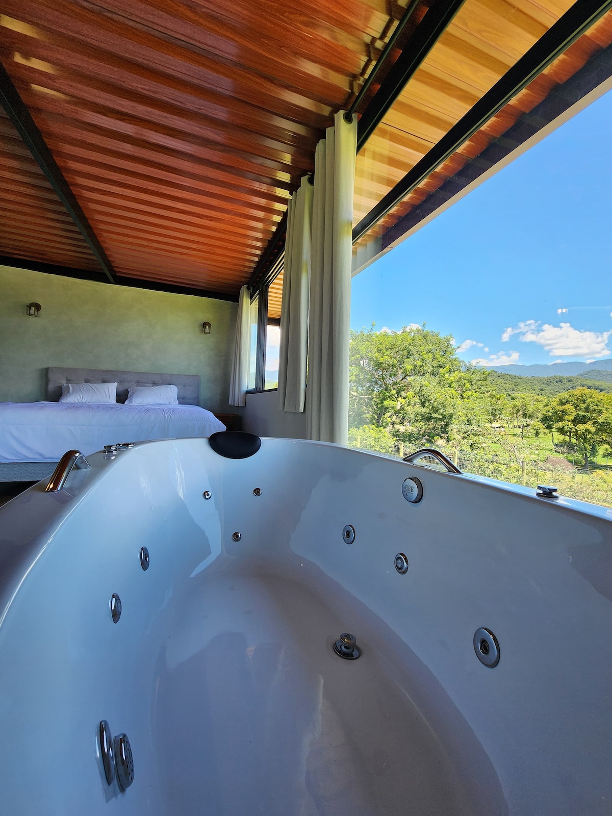 Je to místo, kde si můžete odpočinout, uklidnit se a zvýšit svou vnímavost: poslouchat ticho hor, sledovat světlušky, užívat si bazén v naprostém soukromí, zapálit oheň před spaním, abyste viděli hvězdy... vše bylo navrženo tak, aby zesílilo krásu přírody a naplnilo vás jednoduchostí. Ale ne tak docela... pokud je příliš chladno nebo horko, máte k dispozici klimatizaci, internet, velkou obrazovku s projektorem, manželskou postel s pružinovou matrací a vanu s plynovým ohřevem. Pro dny plné klidu a pohodlí.