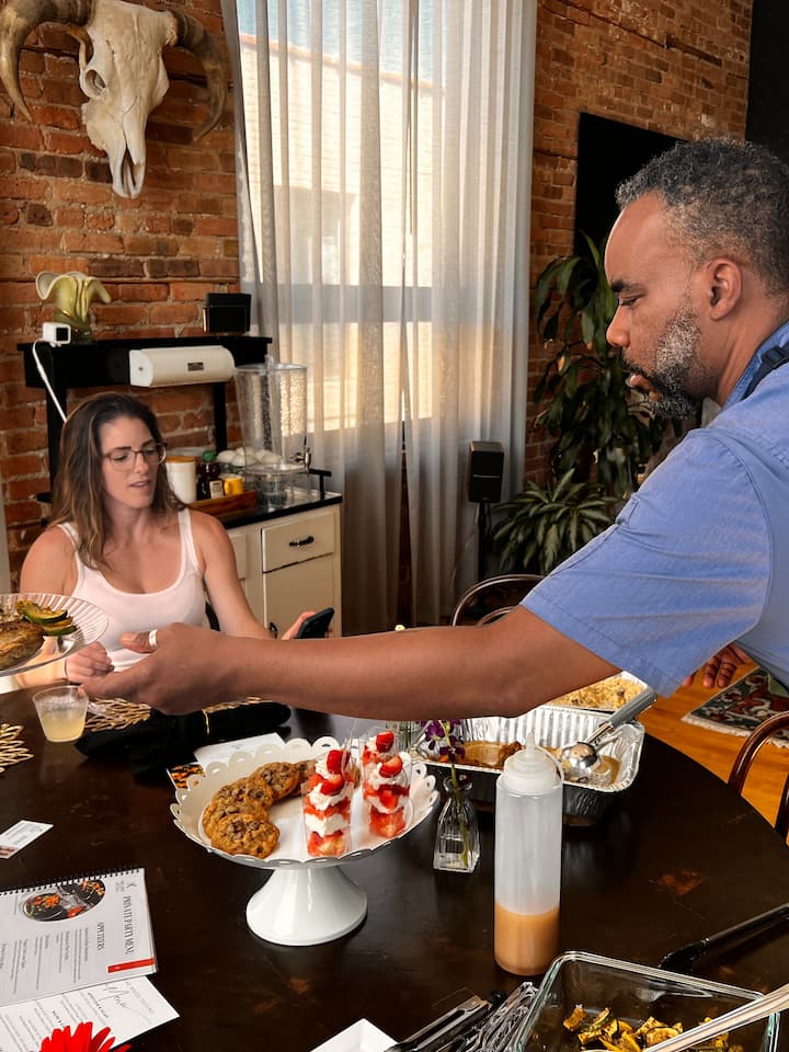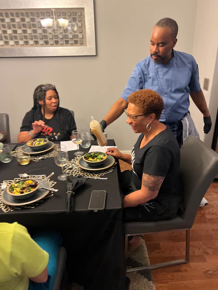 Tato možnost zahrnuje předkrm, salát, hlavní jídlo a dezert. Zahrnuje také přípravu na místě, servis a úklid. Představ si elegantní prostřený stůl při svíčkách a vlastní playlist. Hosté si můžou přinést vlastní víno nebo alkohol.