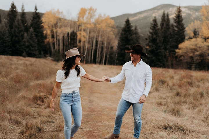 Vyfoť krásné rodinné nebo párové portréty v nádherné krajině Colorada při osvětlení zlaté hodiny.