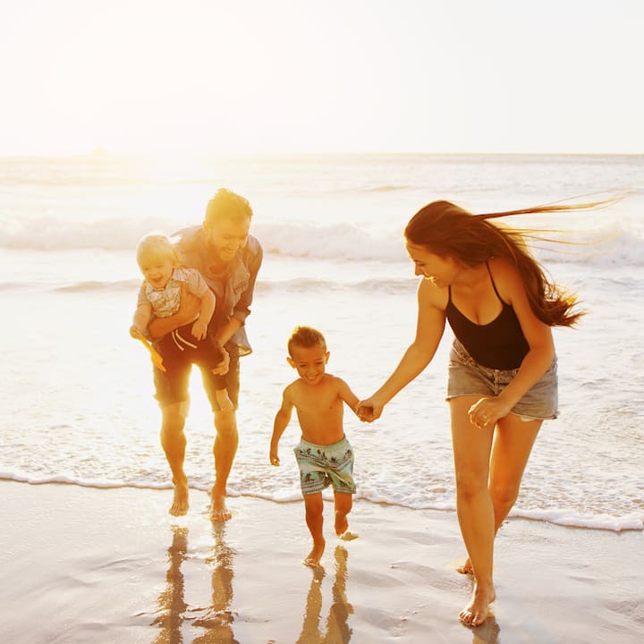 Fotky párů, přátel nebo rodiny na pláži při západu slunce. Zahrnuje upravenou online fotogalerii, kterou si můžeš stáhnout do 2–4 dnů.