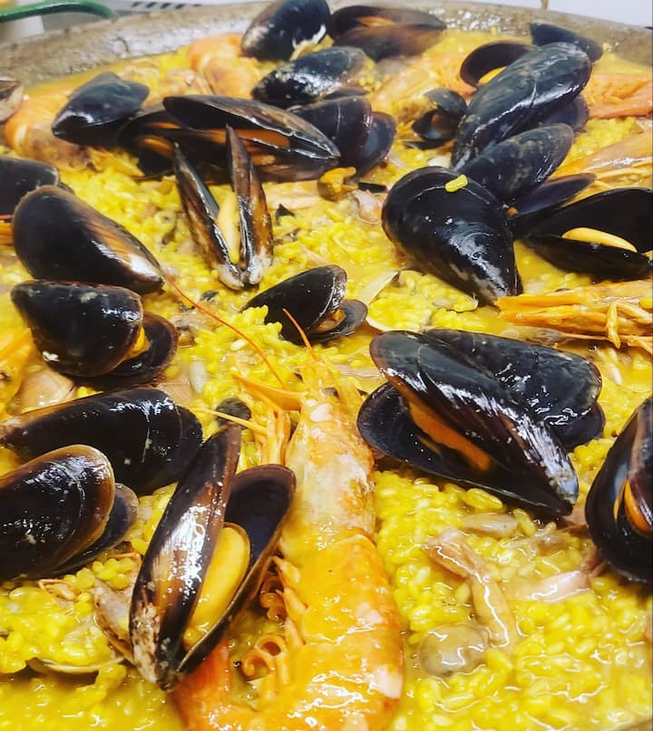 Vychutnej si všechny předkrmy včetně Pimiento del Padron, Patatas Bravas a smíšených krokety. Vyber si svou oblíbenou paellu z mořských plodů, smíšenou nebo vegetariánskou. Na závěr si můžeš vybrat mandlový mallorquinský „gato“ se zmrzlinou nebo klasickou Crema Catalana.
