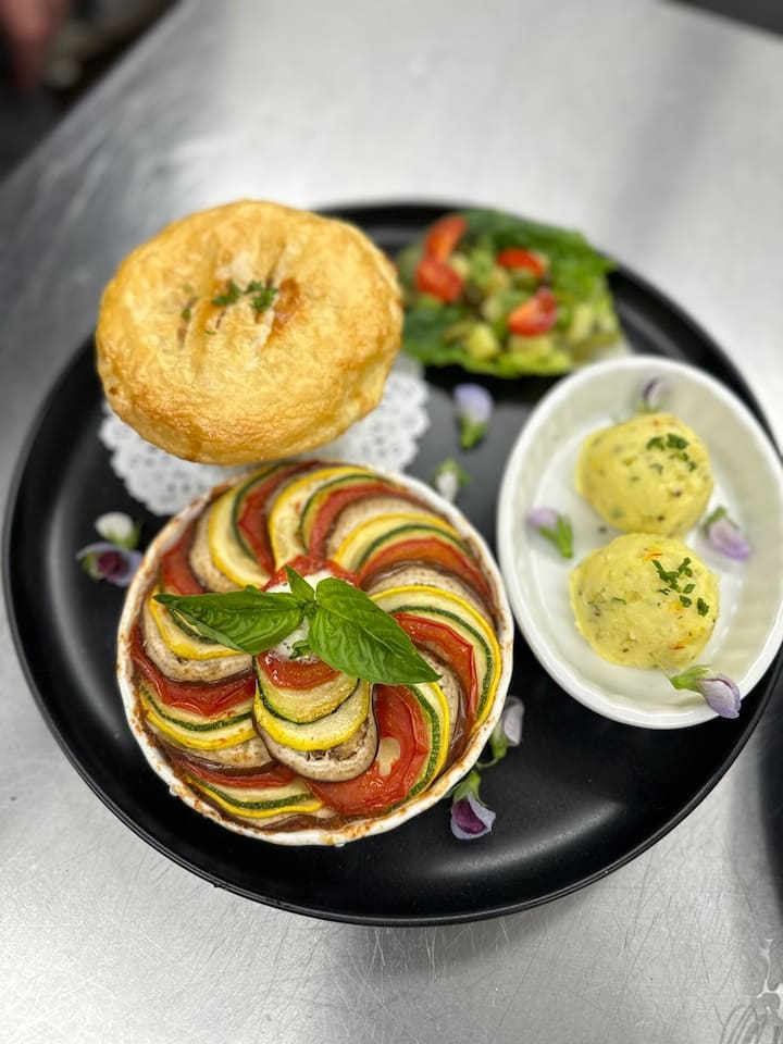 Zažij klasickou francouzskou kuchyni s pečlivě vybraným menu. Začni tím, že si vybereš z nabídky francouzských sýrů nebo uzenin. Jako první chod si vychutnej buď bohatou francouzskou cibulovou polévku, nebo čerstvý zelený salát. Hlavní chod nabízí na výběr steak s hranolky, coq au vin nebo vegetariánskou ratatouille. Zakonči to nadčasovým crème brûlée.
