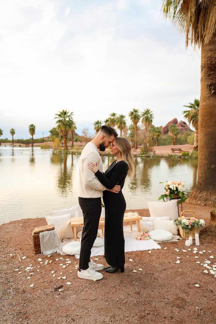 Promyšleně navržený piknik, který je ideální pro posílení vztahů, oslavu a společné vychutnání si okamžiku. Ideální pro výročí, zásnuby, narozeniny nebo prostě jen tak – na malebném místě v Arizoně nebo v soukromém prostředí podle tvého výběru. Zahrnuje 10 upravených fotografií, které ti doručíme digitálně za 2–3 týdny. (Poplatek za doručení ve stejný den je volitelný)
