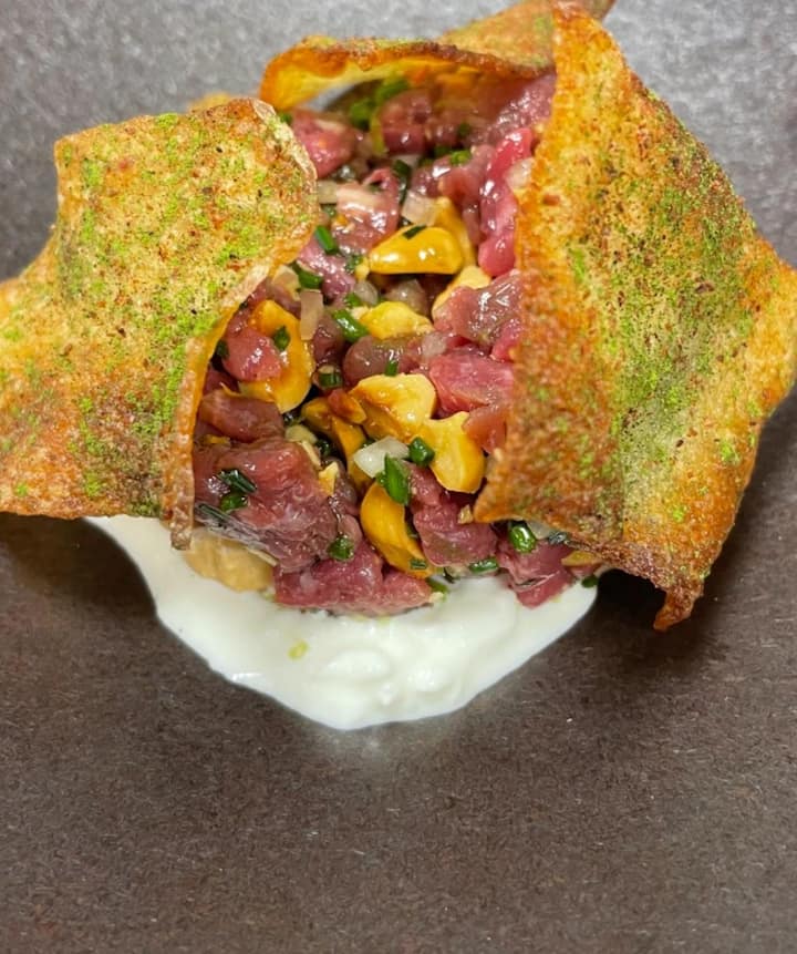 Toto valentýnské menu je navrženo jako společná cesta: živá, uklidňující a hluboce aromatická. Každý chod je vyvážený, svěží a teplý, kyselý a bohatý, a oslavuje sezónní produkty prostřednictvím vlivů středomořské, blízkovýchodní a jihoamerické kuchyně. Zážitek se rozvíjí jemně, vybízí k konverzaci, blízkosti a potěšení.