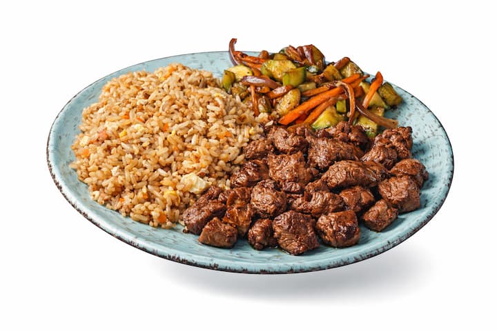 Připrav se na zážitek s tímto lahodným japonským jídlem – vyber si steak, krevety, kuře, lososa, nebo buď kreativní a zkombinuj je. Podává se se smaženou rýží, miso polévkou a salátem.