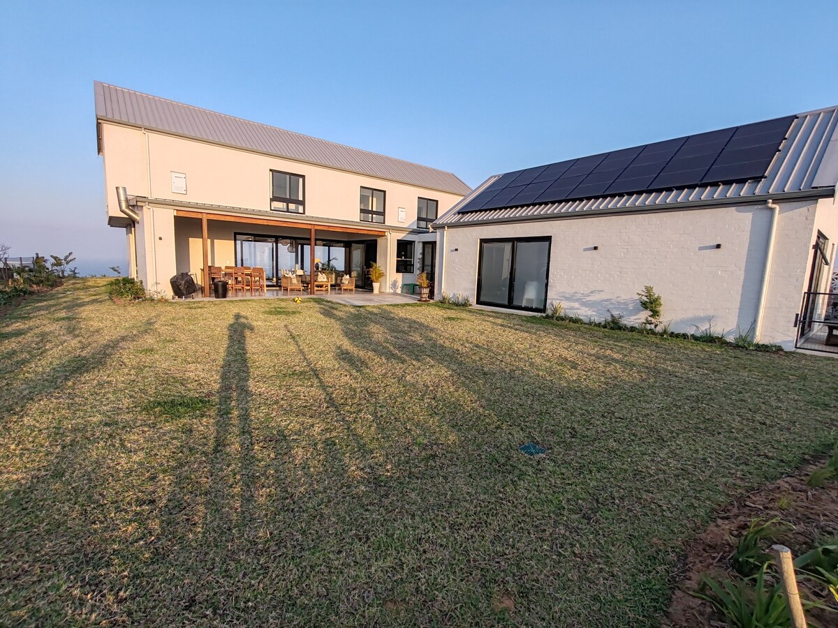 Moderní dům na pláži Salt Rock • Výhled na oceán a bazén Probuď se v krásně navrženém pobřežním domě s úchvatným výhledem na oceán a zvukem vln. Odpočiň si u soukromého bazénu, užij si svěží otevřený obývací prostor a vychutnej si východy slunce nad mořem z prostorného skleněného velkého pokoje. Díky promyšlenému dekoru, spolehlivé solární energii a rychlé Wi-Fi nabízí tento domov bezstarostný a klidný pobyt jen pár kroků od pláže. Ideální pro rodiny, páry nebo kohokoliv, kdo touží po klidném zážitku na pobřeží delfínů.