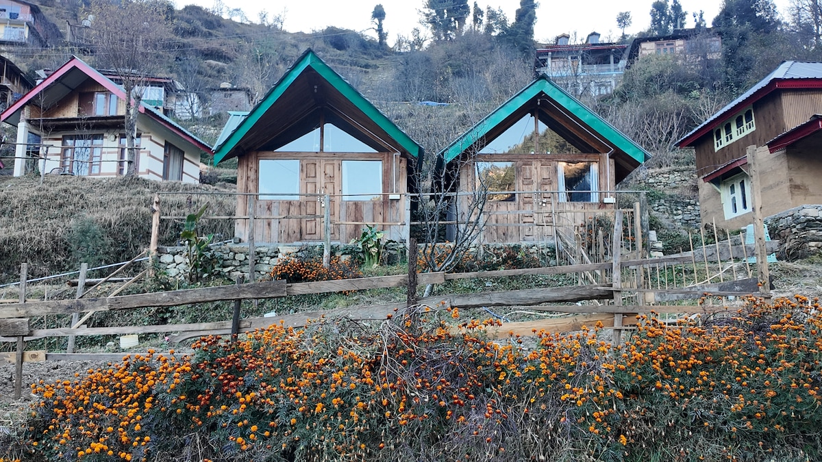 Celoroční chatrč postavená v tradičním stylu Himachali s veškerým moderním vybavením. Chata se nachází v krásném ovocném sadu na okraji Velkého himálajského národního parku. Je to nádherné místo, kde můžete zažít všechna roční období, ať už je to sníh v zimě, třešňové květy na jaře, ovocné sady v létě. Dům hostitelské rodiny je 50 metrů od chaty. Chata nabízí naprosté soukromí a osamělost a hostitelé jsou v dostupné vzdálenosti.