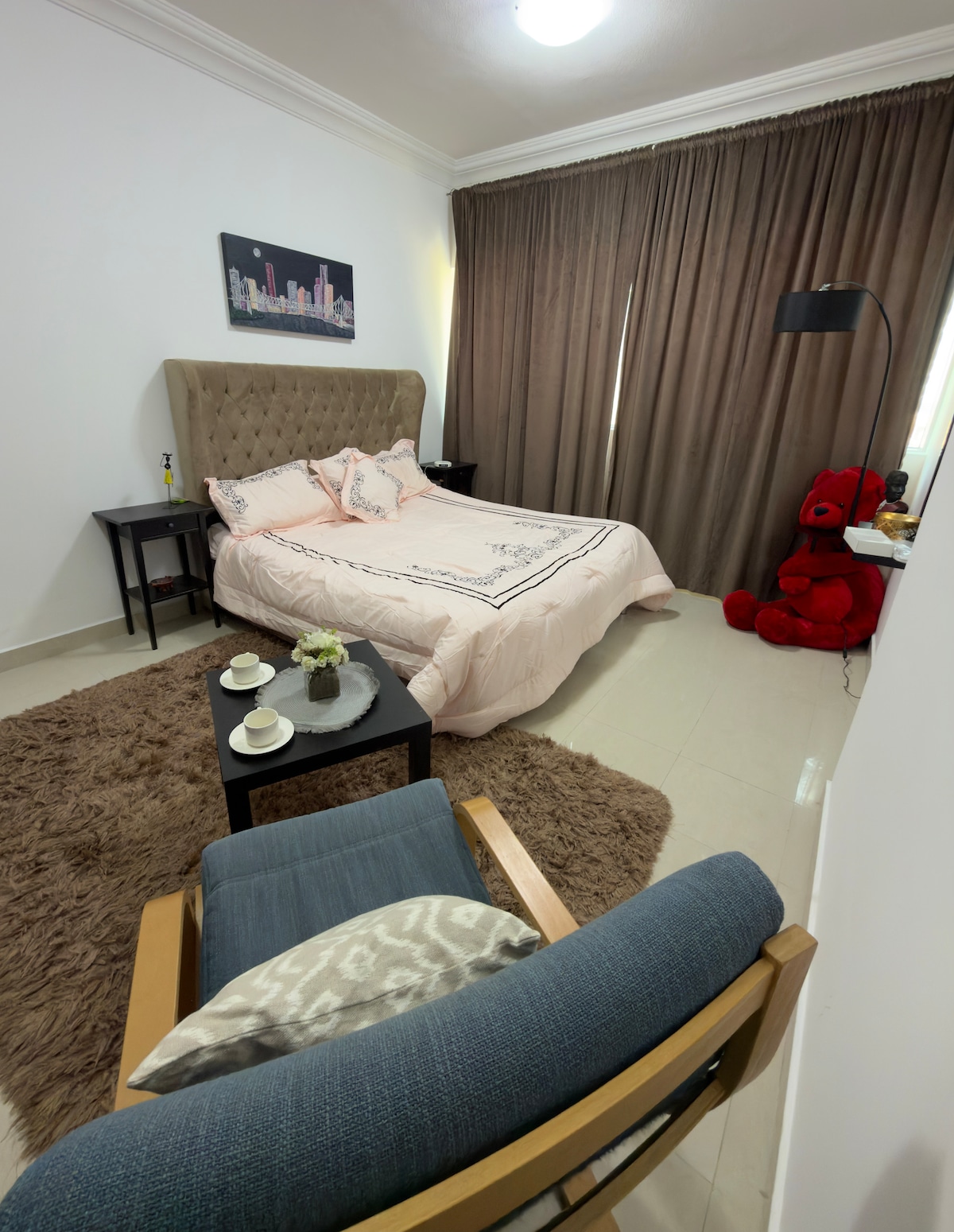 Odpočiň si s rodinou nebo přáteli na tomto klidném místě. Nachází se v Sharjah uae. Nonstop obchody s potravinami jsou jen pár kroků odtud. Central Market is on 10 minutes walk. multiple car parking slots are available 24/7 for Guests. Venkovní zahrada, kde si můžeš odpočinout na čerstvém vzduchu. Máme individuální klimatizaci v každém pokoji. vysokorychlostní internet pro práci na dálku. Pozor: Dovolujeme, aby se zde ubytovali pouze cestovatelé nebo rodiny, prosíme, nerezervuj si toto ubytování za účelem randění.