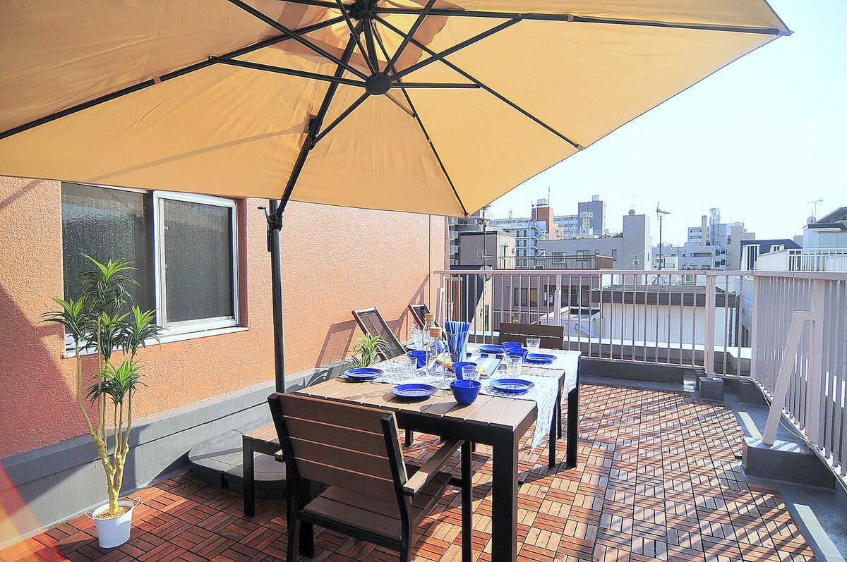 Asakusa (celá vila) 5 minut chůze od chrámu Asakusa / velká plocha pro 13 osob / bezplatné parkování