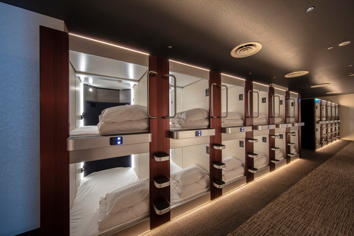 [Pouze pro ženy] Kapslový pokoj * Rezervace nejsou k dispozici pro muže. Asi 1 minutu chůze od stanice JR Onomichi.Jedná se o kapslový hotel s vynikajícím přístupem. Nabízíme čisté a pohodlné ubytování, které je ideální pro sólo cestovatele a cyklisty.Je to samostatné patro pro muže a ženy, takže je to bezpečné pro ženy cestující samy. Budova je také plně vybavena barem s občerstvením, bezplatnými nápoji, bezplatnou Wi-Fi a vnitřním parkovištěm pro kola. Doporučeno pro ・ Pro ty, kteří chtějí snížit náklady na ubytování, ale zároveň upřednostňují pohodlí ・ Pro ty, kteří si chtějí vychutnat památky a cyklistiku a ubytování využívat pouze na spaní ・ Ti, kteří chtějí navštívit Shimamami Kaido a Onomichi jako základnu Co si zamiluješ ・ V kapsli je zásuvka.Můžeš taky v klidu nabíjet svůj smartphone ・ Oddělená patra pro muže a ženy a vyhrazené uzamykatelné skříňky a bezpečnost ◎ ・ WiFi zdarma v celé budově, k dispozici také v kapsli ・ Nápoje zdarma ve společném salónku ・ Sprcha, umývárna a WC jsou zcela oddělené a čisté – K dispozici je také bar s příslušenstvím a fén ・ K dispozici je kryté parkoviště pro kola.Bezpečné pro cyklisty ・ Plně vybaveno, včetně prádelny na mince (placené), takže je vhodné pro dlouhodobé pobyty