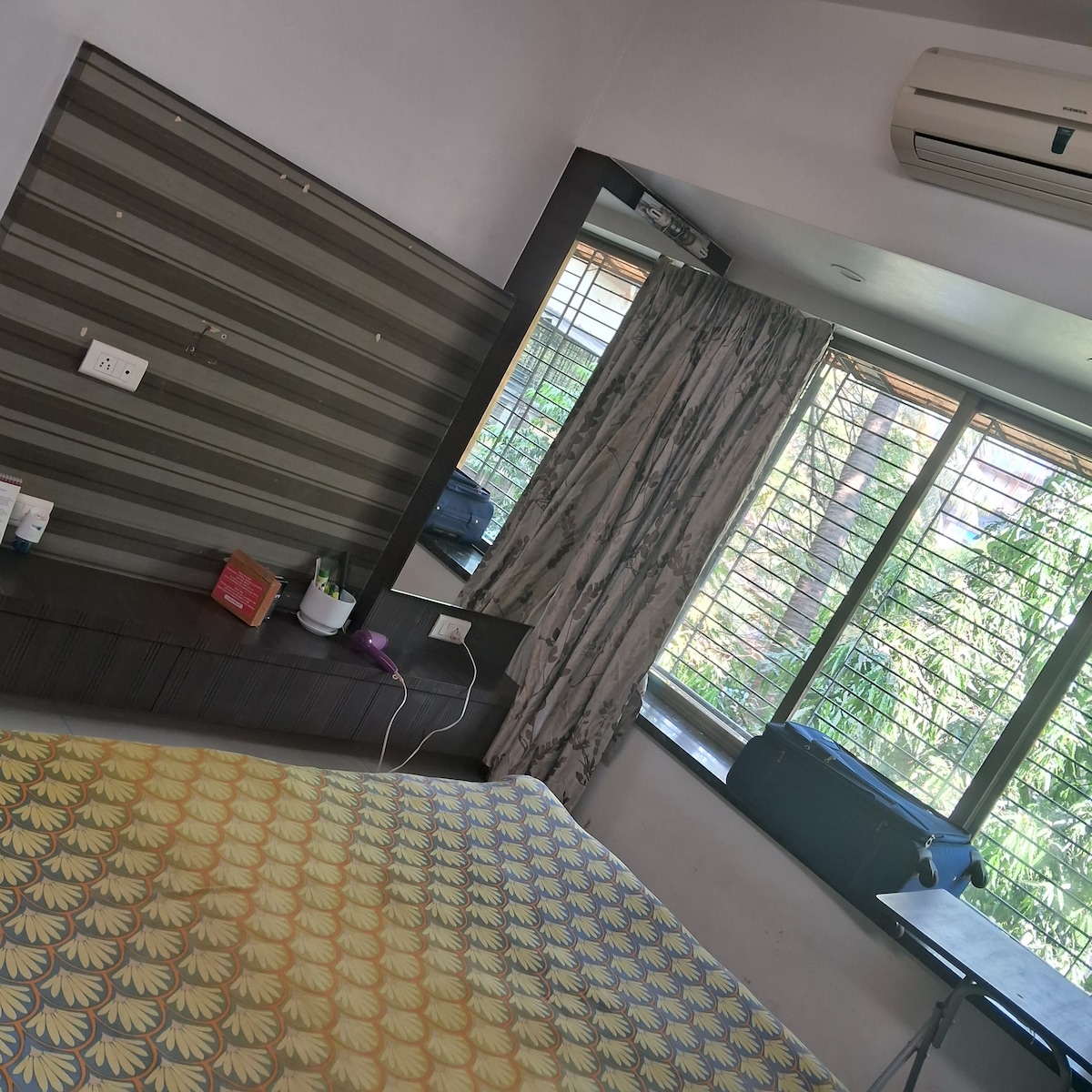 Klidné 2 BHK v srdci Bombaje. Tento prostorný apartmán s 2 ložnicemi nabízí klidný pobyt obklopený bujnou zelení. Nachází se v centru sběratelské kolonie a může se pochlubit 360° výhledem na zahrady Je plně vybaven moderním vybavením , stylovou kuchyní, rychlým Wi-Fi a útulným obývacím prostorem. Jsi hladce propojen/a s obchodními centry v Bombaji, jen pár minut od BKC/USA Visa prostřednictvím konektoru BKC a rychlé jízdy do Jižní Bombaje , stanice CST a brány Indie po dálnici.