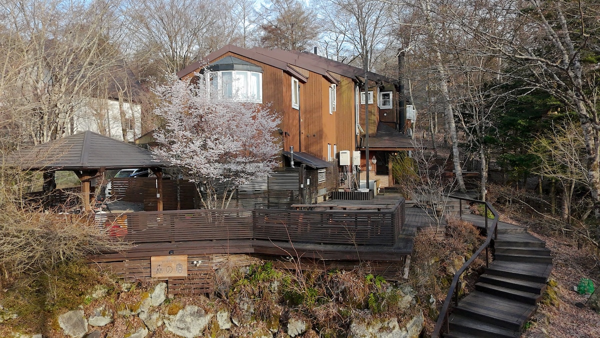 Pension Moon Light is located on the northern shore of Lake Kawaguchi, where you can enjoy a spectacular view of Mount Fuji and the lake, quietly nestled in a forest. The antique interior of the inn has a relaxed atmosphere, where you can forget about the flow of time. A 15-minute walk will take you to a postcard-like location where you can enjoy the changing seasons and the magnificent view of Mt Fuji. Please come spend a quiet memorable time here at Pension Moon Light.
