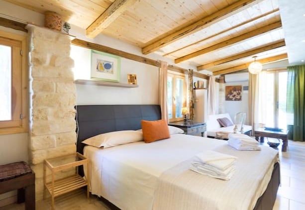 Lasciati incantare da questo adorabile alloggio. Si tratta di una camera matrimoniale con bagno privato e patio, immersa nel verde di un uliveto. Il cottage si trova nel contesto di una villa privata con la quale si condivide parte del giardino e una piscina coperta. Nel contesto della casa sono presenti un appartamento (aprisa apartment) e un altro cottage per un numero massimo di 6/7 ospiti.
