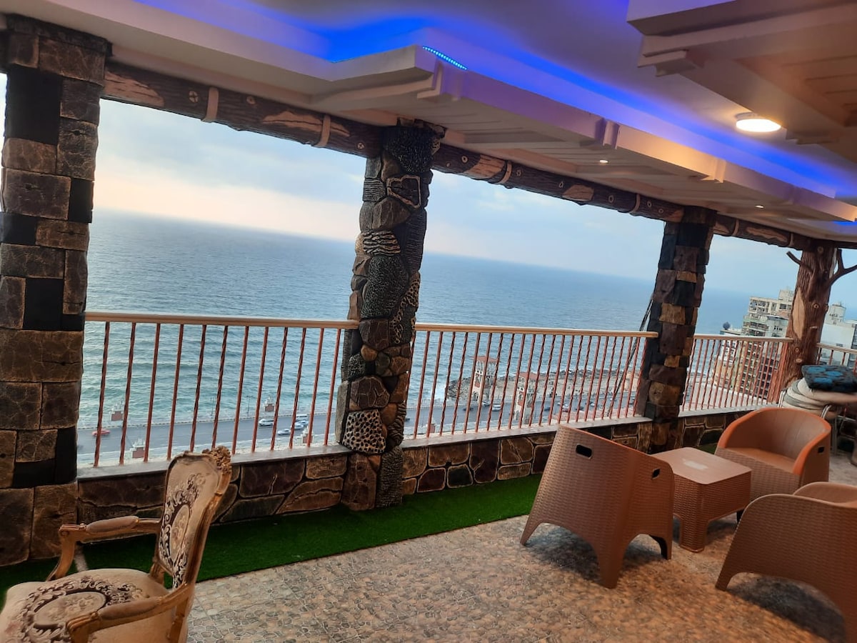 Apartmán s výhledem na moře v centrální poloze v Alexandrii a s výhledem na moře z balkonu. poloha bytu je uprostřed Alexandrie a tato vynikající poloha vám umožní plně využít vybavení na dosah ruky. 3 Super trhy 24 hodin , 2 lékárny 24 hodin, restaurace a kavárny po celé oblasti. Rodiny a manželské páry jsou povoleny pouze - během pobytu je vyžadována kopie průkazu totožnosti - Rezervace musí trvat nejméně jeden týden.