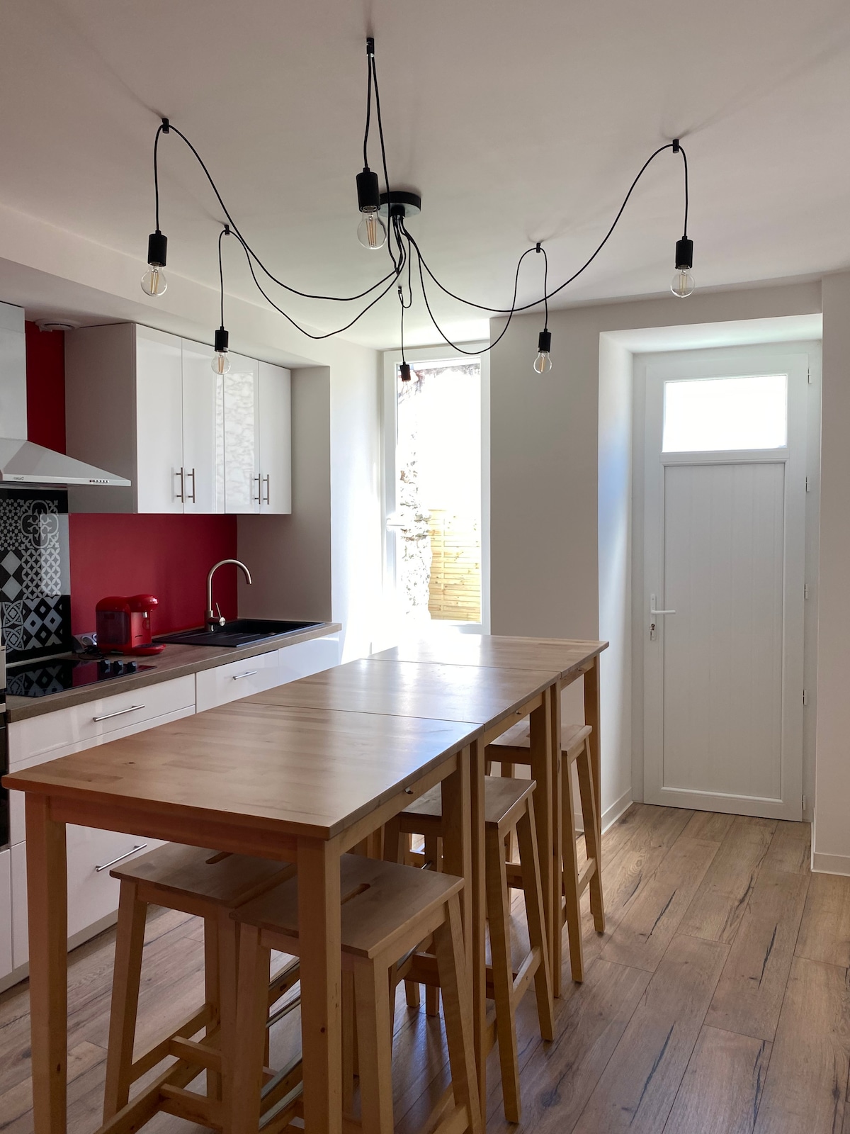 Logement indépendant avec extérieur privatisé calme et élégant. Une pièce à vivre "lumineuse" comprenant, une cuisine entièrement équipée et le salon avec un canapé rapidement convertible en lit 140x200. Une chambre très claire contenant un lit 140x190, peuvant accueillir le lit bébé et permetant de ranger votre linge La salle d eau avec sa grande douche et un débarras qui permettra de déposer vos valises vides L'extérieur vous permettra de vous détendre, voir des lapins et parfois des biche.