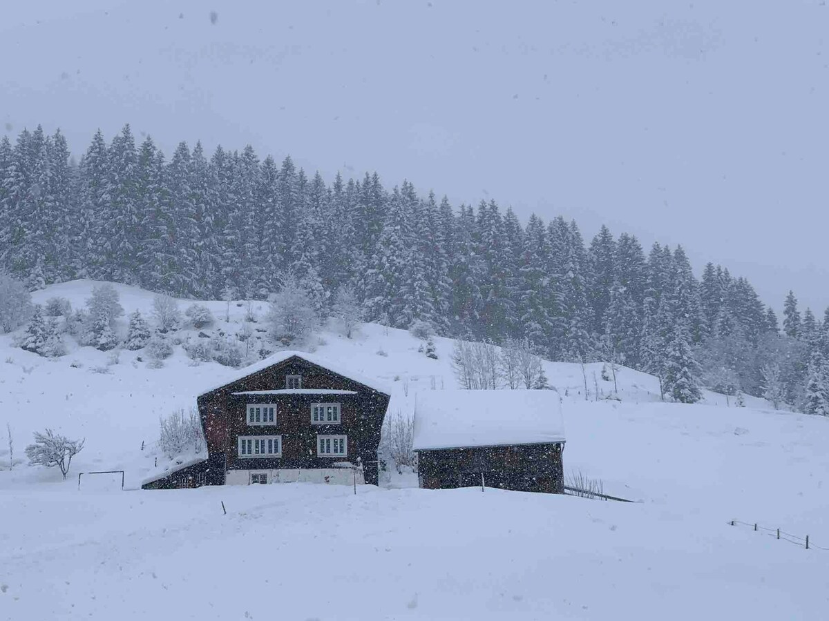 Unser Ferienhaus (Chalet Sagentobel) ist zwar schon alt, aber sehr gemütlich! Der rauschende Bach und die unendliche Stille, wenn es schneit, sind wahrlich spezielle Erlebnisse im Chalet. Moderne Technik (46" Flat Screen TV, 50Mbit WLAN, Radio) und Elektro-Öfen in allen Zimmern treffen auf das Jahrhunderte alte Holzwerk mit einem rustikalen, mit Holz heizbaren Kachelofen. Wir freuen uns, Sie beherbergen zu dürfen! Raoul und Harry Keller