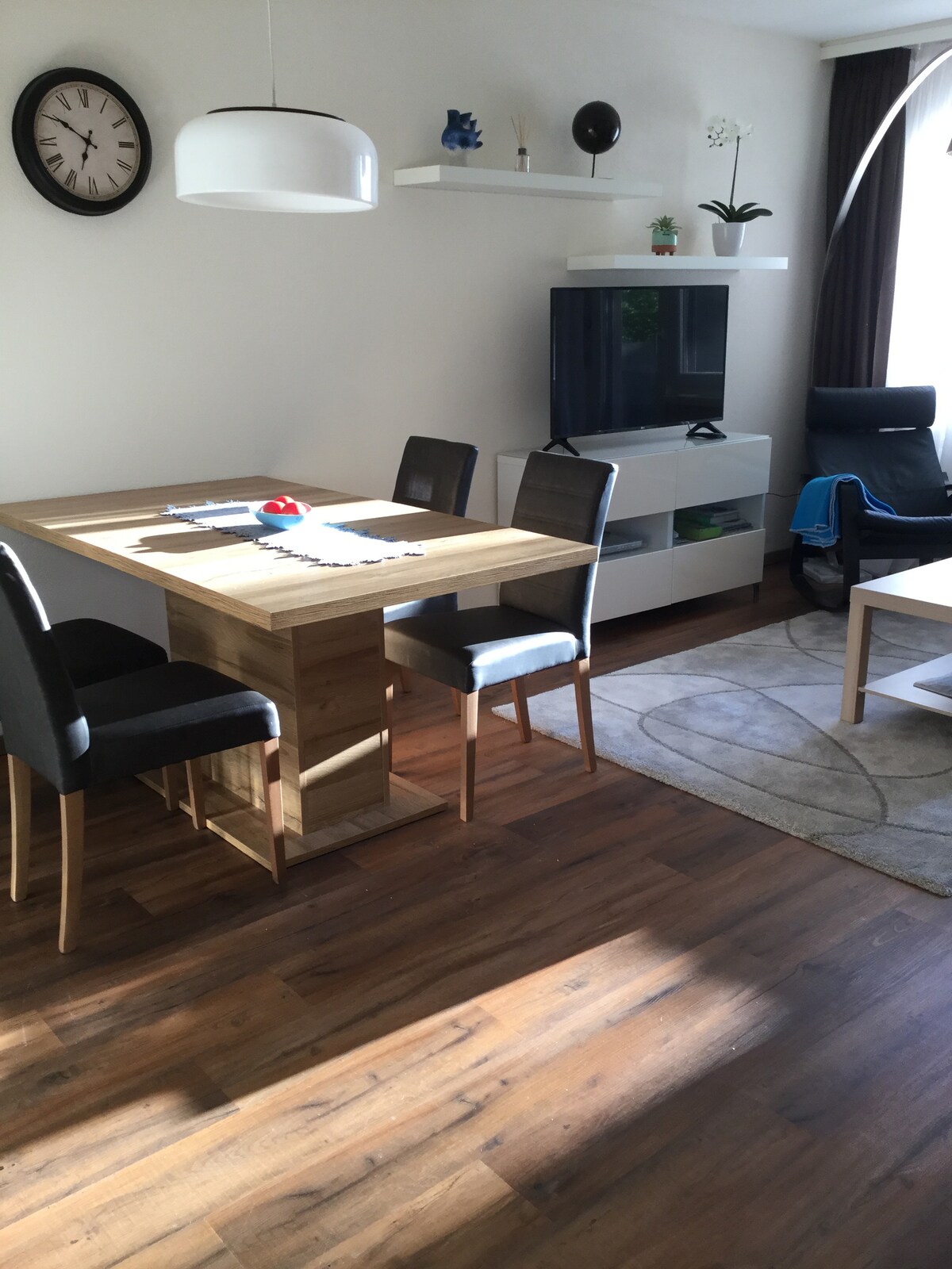 Privat 100 m2 freshly renovated four bedroom Family Suite with large balcony and alpine views conviently located in the center of switzerland. 2 king-size beds 180 cm wide in two separate bedrooms. Bedroom 3: 90 cm wide. Bedroom 4: sofa bed 160 cm wide. Very fast internet WIFI connection (300 MBit/s) 55-inch Smart TV 2024 Luxurious bathroom with rain shower and large LED mirror. New and well-stocked kitchen. Free Lavazza coffee in French press.