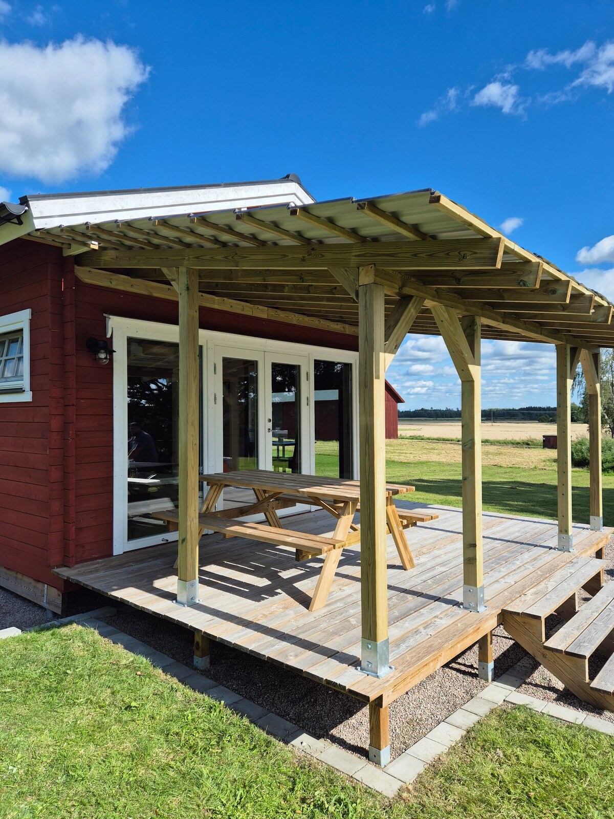 Koppla av med familjen i detta fridfulla boende som ligger precis invid ett naturreservat. I skogen finns bär och svamp och trevliga stigar att promenera på. Ett par kilometer bort finns ytterligare ett naturreservat med en vacker ravindal värd att besöka. Stugan ligger strax bredvid värdens bondgård. Från altanen har du utsikt över åkrar och hagar med betande djur. Med närhet till flera sjöar och ett utomhusbad passar stugan perfekt för dig som vill njuta av en skön semester ute på landet.