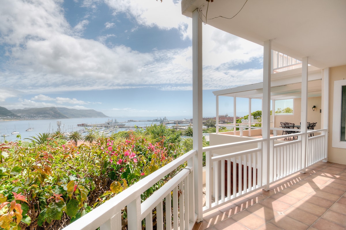 Krásný byt se samostatným vchodem a nádherným výhledem na oceán přes False Bay. Prostorný, světlý a stylový, s osobitými detaily, díky nimž se budete cítit jako doma. Nachází se v pěší vzdálenosti od krásných pláží. Jsme 10 minut chůze od tučňáčí kolonie Boulders Beach a 20 minut chůze od restaurací a historických památek v Simon's Town. Byt je připojen k našemu domovu, ale zcela soukromý s vlastním vchodem přes cestu lemovanou plumbagem a výhledem na horu.