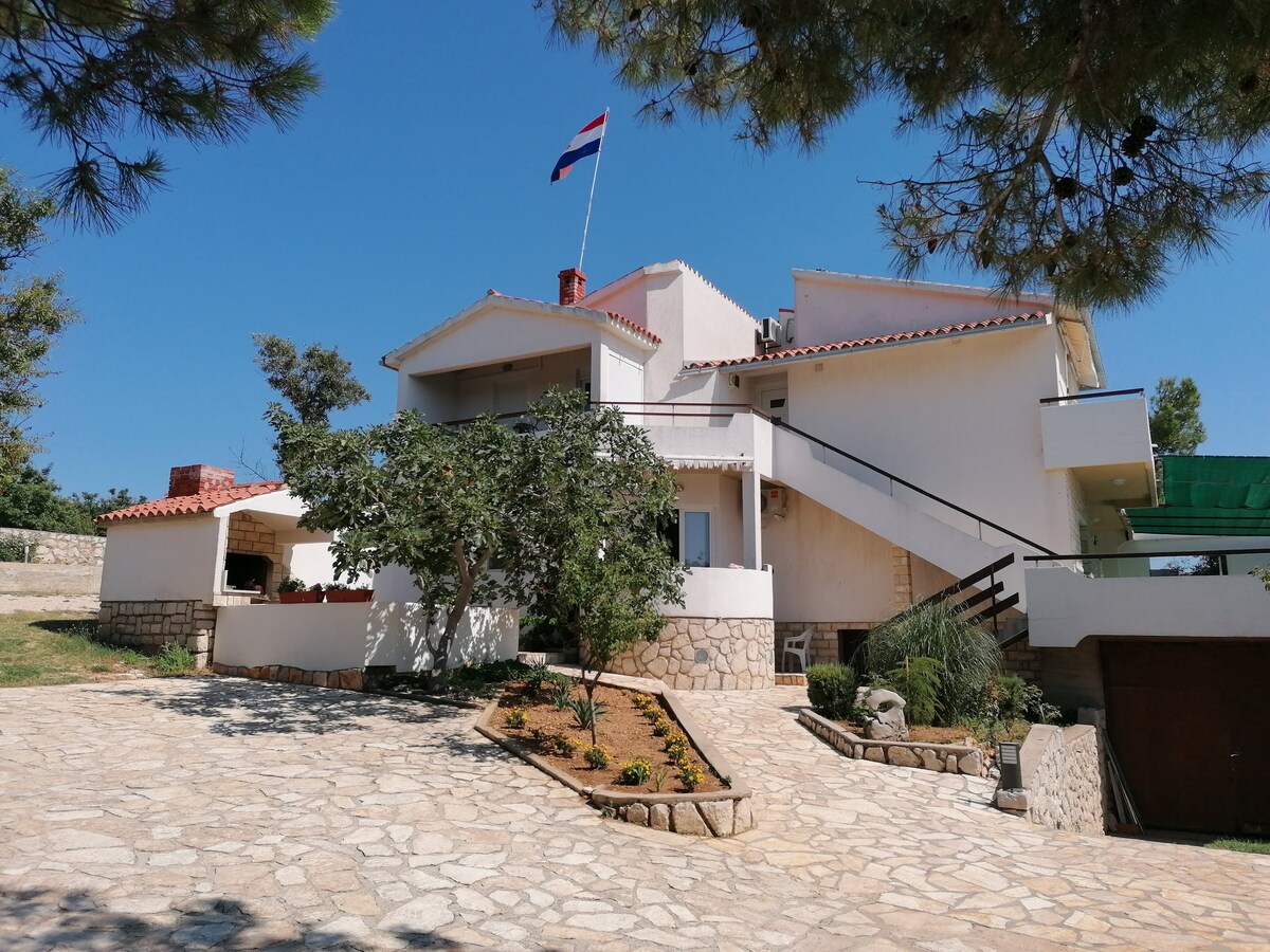 Náš dům se nachází v krásné zátoce města Pag, v blízkosti mnoha různých pláží. Nabízíme vám plně vybavené apartmány pro 2–6 osob, s terasami (krásný výhled na moře a město), bazénem, soukromým parkovištěm a místem s grilováním pro společenské setkávání. Bazén je k dispozici od poloviny května do začátku října.