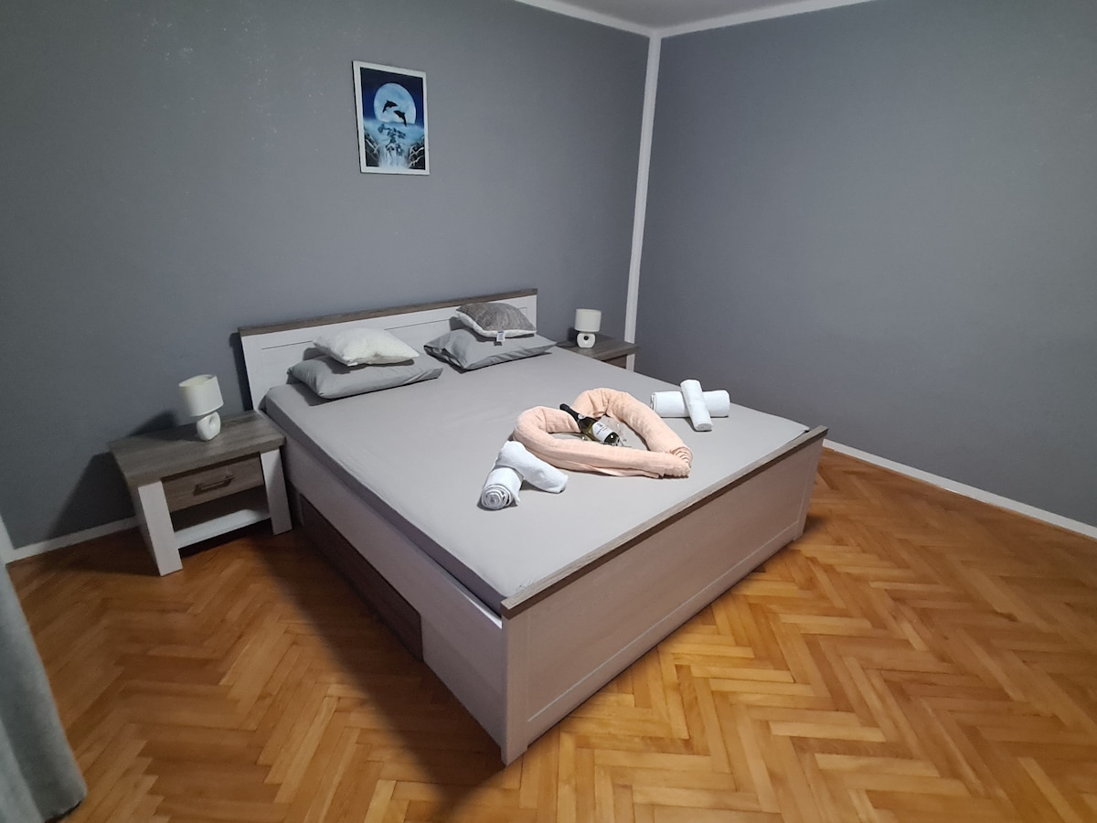 Světlý a prostorný apartmán se dvěma ložnicemi, dvěma koupelnami, velkým obývacím pokojem a krásnou terasou s výhledem na Panský záliv – ideální pro večeře, aperitivy a snídaně. Jen 2 minuty od pláže, se soukromým parkováním přímo pod bytem. Centrum města Pag je vzdáleno pouhých 10 minut chůze. Ideální pro relaxační pobyt u moře s úžasným výhledem a veškerým pohodlím, které potřebuješ.