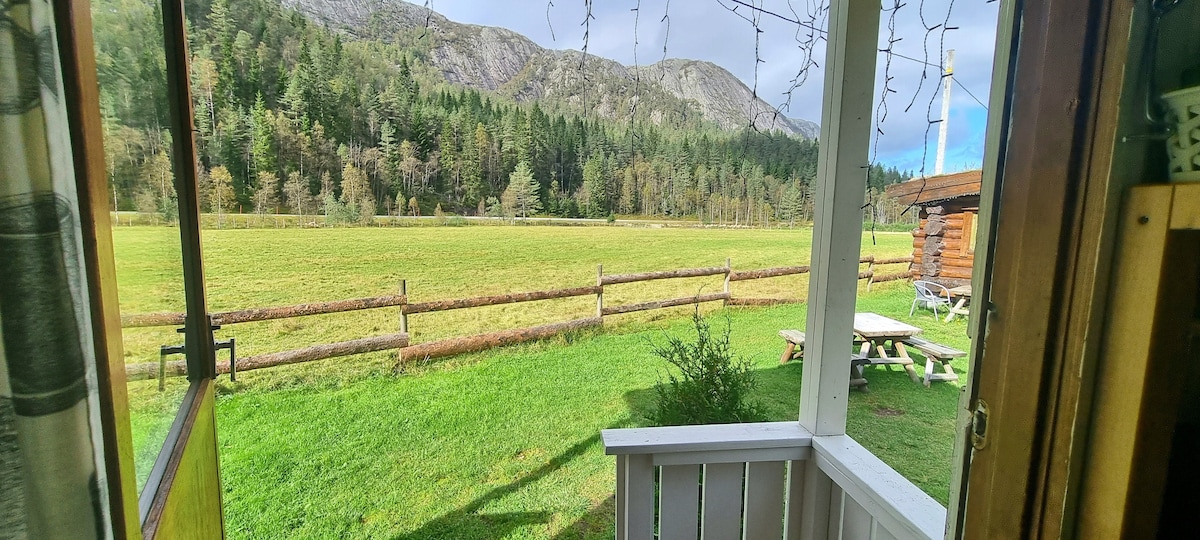 Dům pro hosty na idylické horské farmě. U jezera. 6 km od centra Raulandu, 600 m od lyžařského centra Raulandsfjell a lyžařských sjezdovek. Pronájem vířivky (červenprosinec), kajak, veslovací loď. Dvě ložnice, koupelna s pračkou, kuchyňský kout (bez myčky nádobí) a obývací pokoj. Trouba na dřevo. Pytel palivového dřeva - 150 NOK. Velká terasa, gril, zahradní nábytek a ohniště. Pronájem ložního prádla a ručníků 150 NOK na osobu. Hosté uklidí před odjezdem nebo si uklízení objednají za 800 NOK.