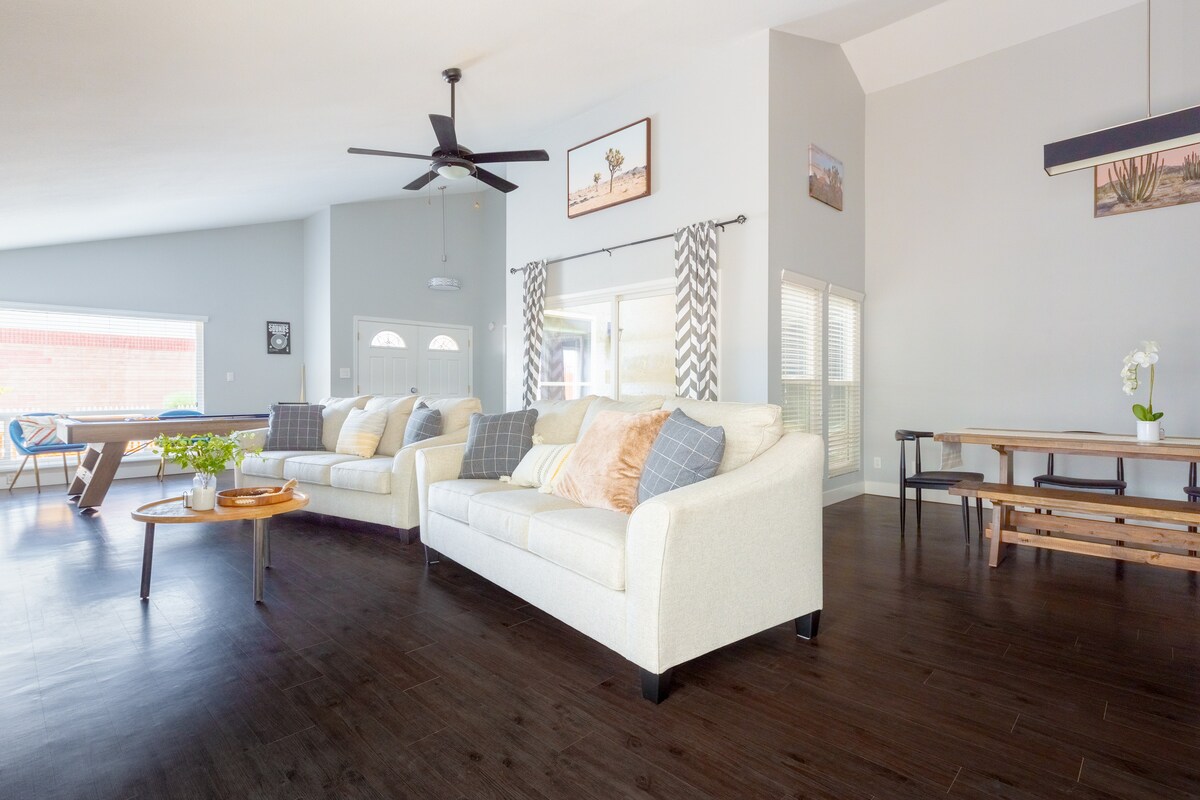 1,600 sqr foot 4BR/2BA House next to Cubs Park and ASU with a Heated Diving Pool, Putting Green, and Gazebo for Outdoor Entertaining. Shaded front patio provides cover for morning coffee and pregame gatherings. Large living room and front room provide plenty of space for members to spread out or gather together. Two arcade games, blackjack and craps tables. Each room has a Fire TV w/Amazon Prime, MLB, guests can login to their own services. Heated pool is $20 extra a day.