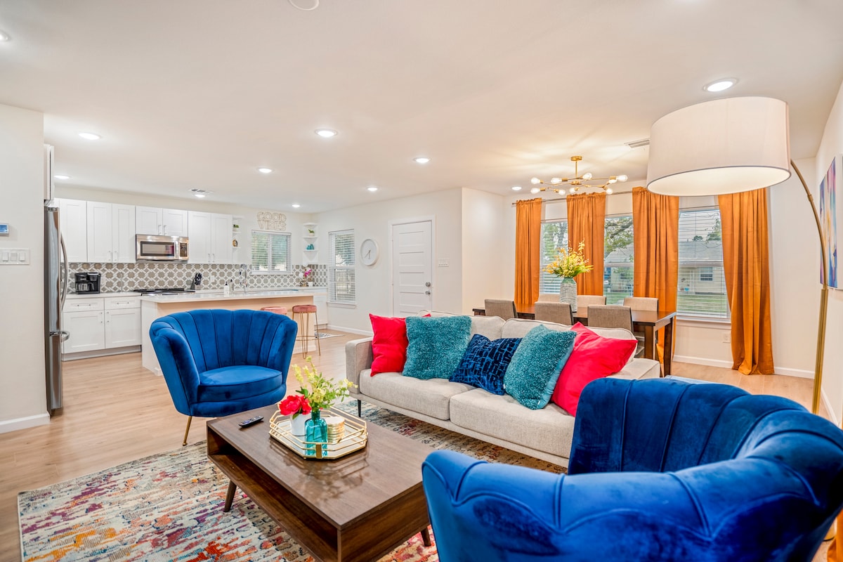 Welcome to this stylish home, just minutes away from Houston downtown, Minute Maid Park, NRG Stadium, and many more attractions. As you walk into the home, you'll notice a unique style crafted for your enjoyment. Each space within the home has its own personality, offering a distinct experience in every room. We're also just minutes from many of our favorite restaurants and Houston activities. If you prefer a cozy night in, just order in and enjoy the home. Don’t miss out on this hidden gem!
