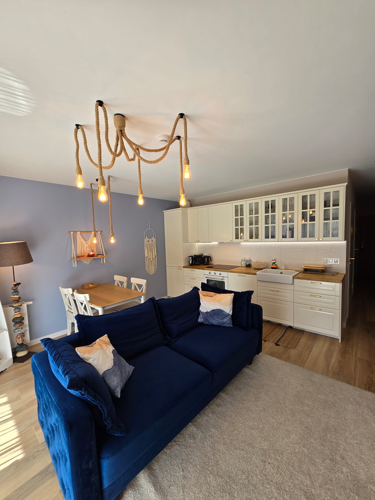 Luxus a klid na 2 úrovních uprostřed přírody. Nemovitost se nachází na jedinečném místě daleko od shonu. Je to okouzlující, nové místo, které se ve své výstavbě vztahuje na staré slovanské vesnice z těchto oblastí - osada hrázděných domů na pobřeží Baltského moře - 1,2 km od útulné pláže a dun. Místo odpočinku a regenerace v lůně přírody, zaručuje klid a aktivní odpočinek. Všechny domy jsou zde v hrázděných domech, což vám dává dojem "cestování v čase