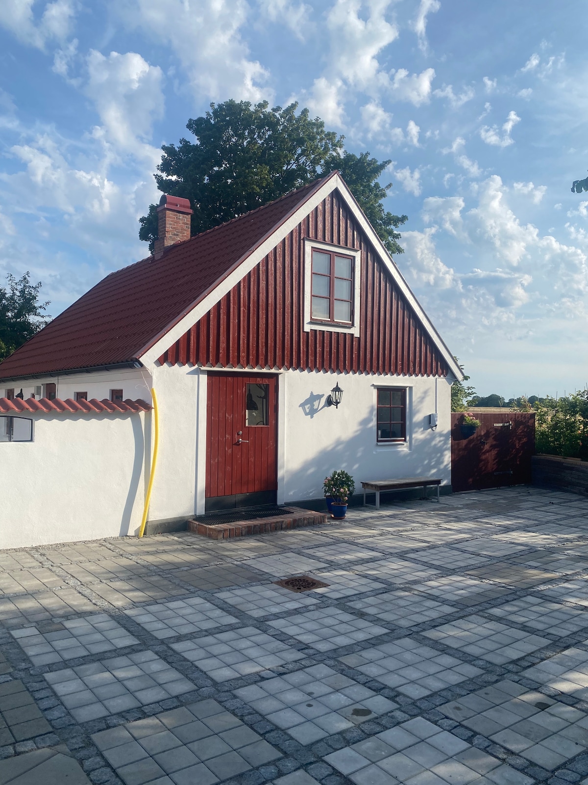Charmigt gårdshus på landet med mysig trädgård